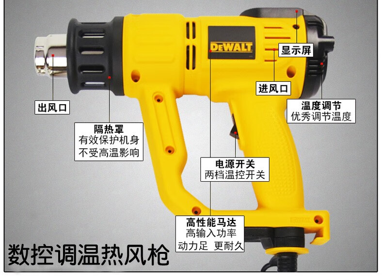 Dewei 2000W 디지털 디스플레이 고출력 뜨거운 공기 총 산업 뜨거운 공기 총 자동차 베이킹 건 D26411 D264144스토어 가기