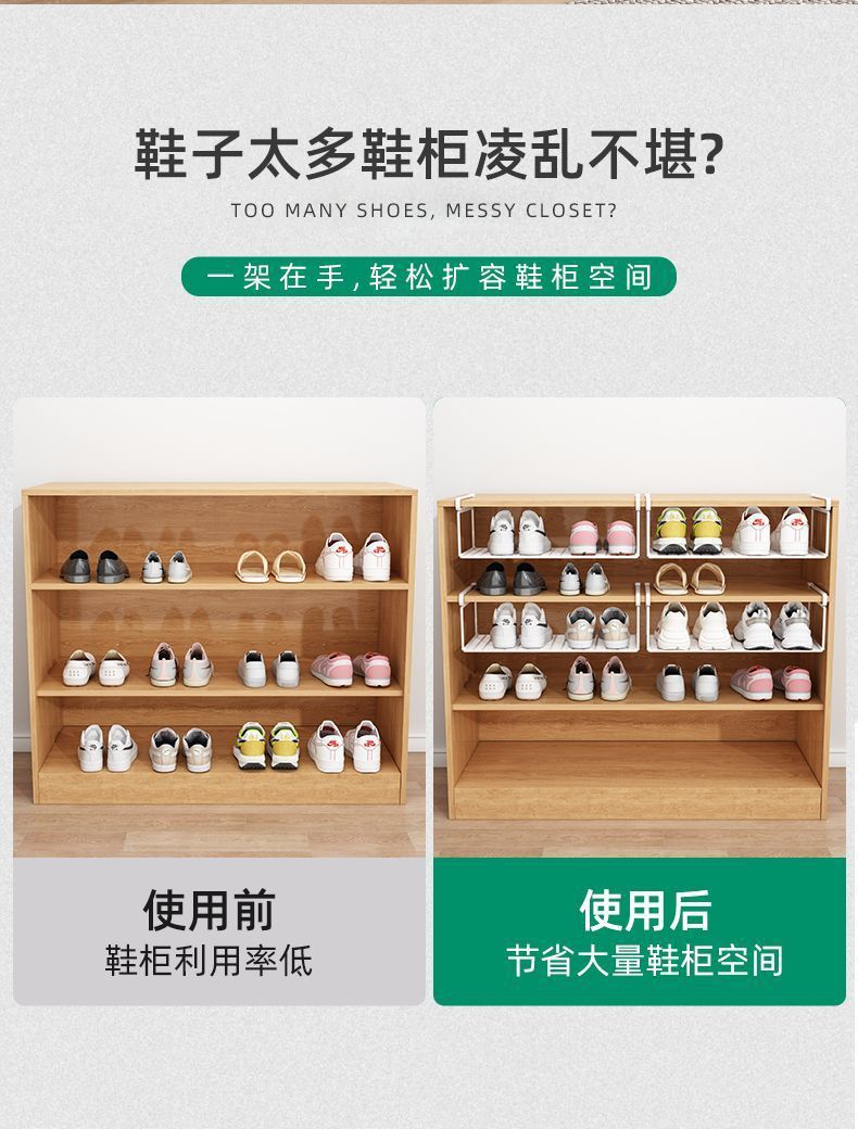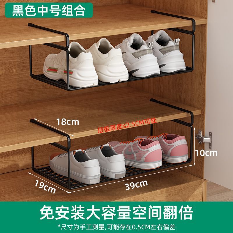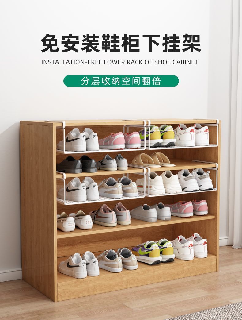 계층화 된 신발 랙 가정용 신발 캐비닛 파티션 아티팩트 낮은 교수형 신발 스토리지 랙 파티션 접이식 하단 지원 교수형 랙스토어 가기