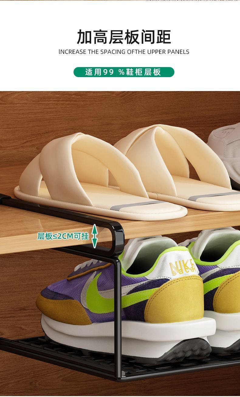 계층화 된 신발 랙 가정용 신발 캐비닛 파티션 아티팩트 낮은 교수형 신발 스토리지 랙 파티션 접이식 하단 지원 교수형 랙