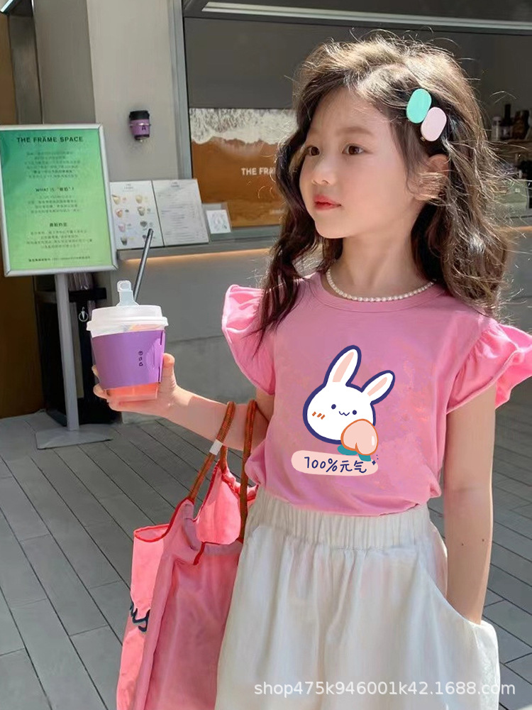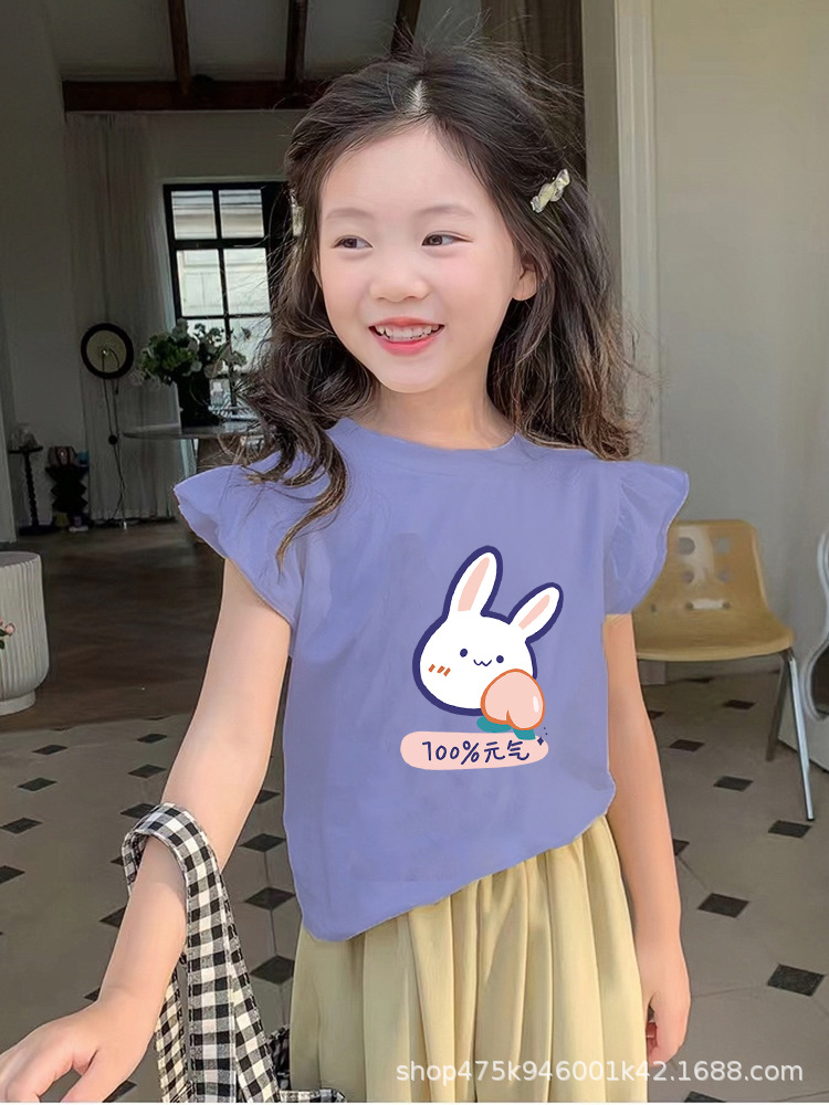 국경 간 소녀 만화 작은 비행 소매 티셔츠 여름 옷 어린이 서양식 면화 탑 소녀 아기 얇은 티셔츠