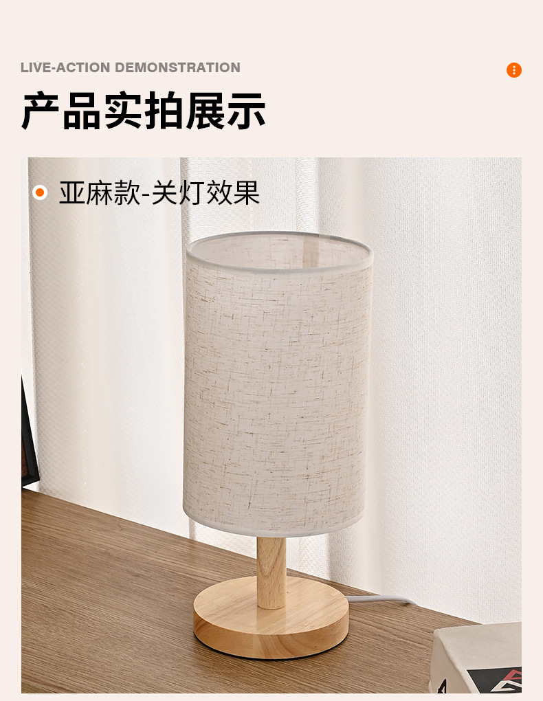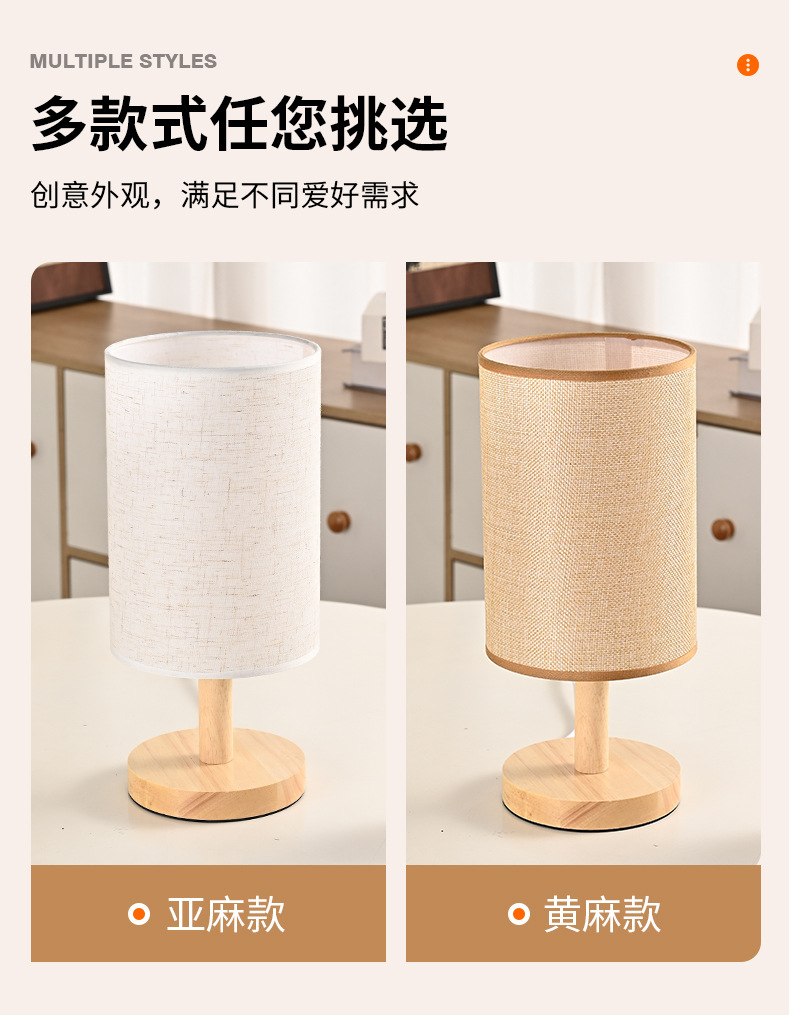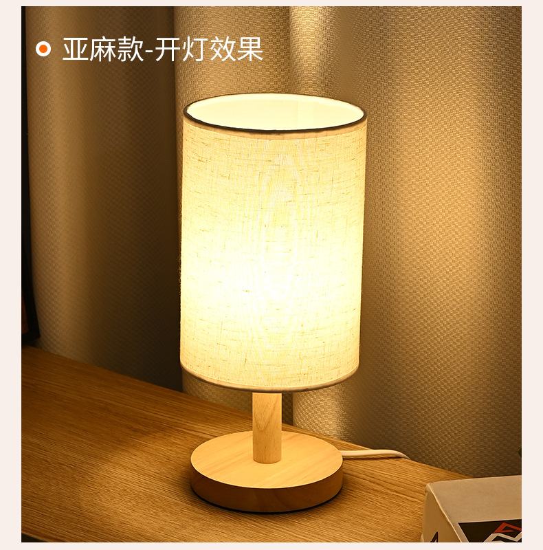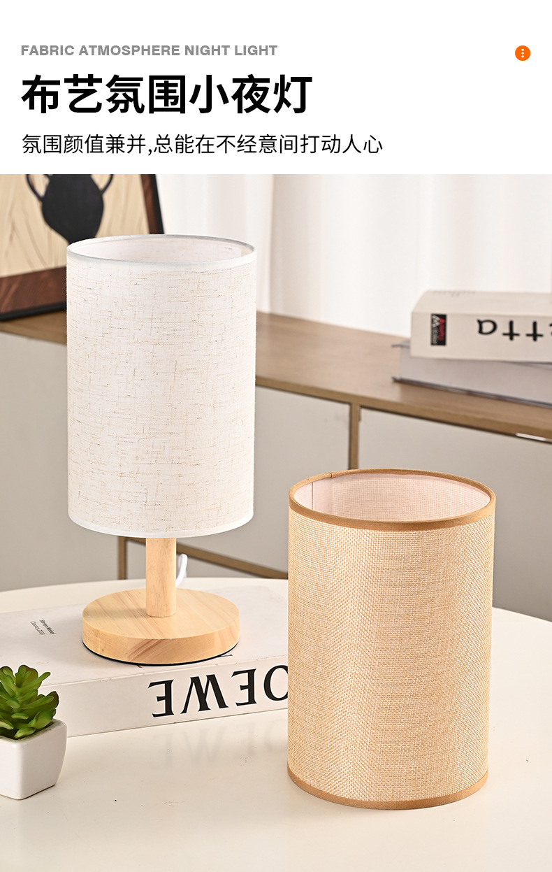 통나무 테이블 램프 간단한 북유럽 장식 패브릭 머리맡 램프 단단한 나무 복고풍 분위기 수제 diy 양각 야간 조명