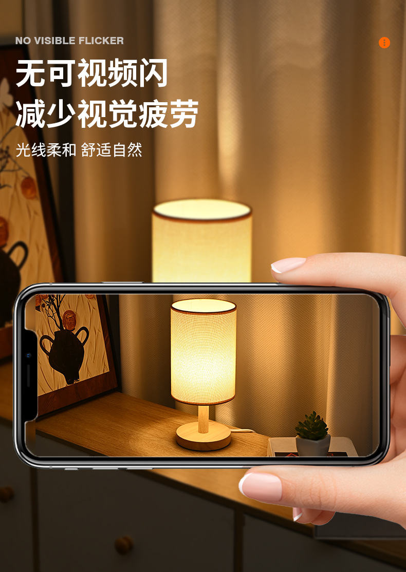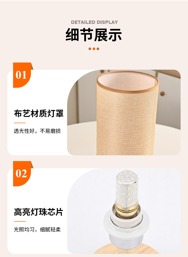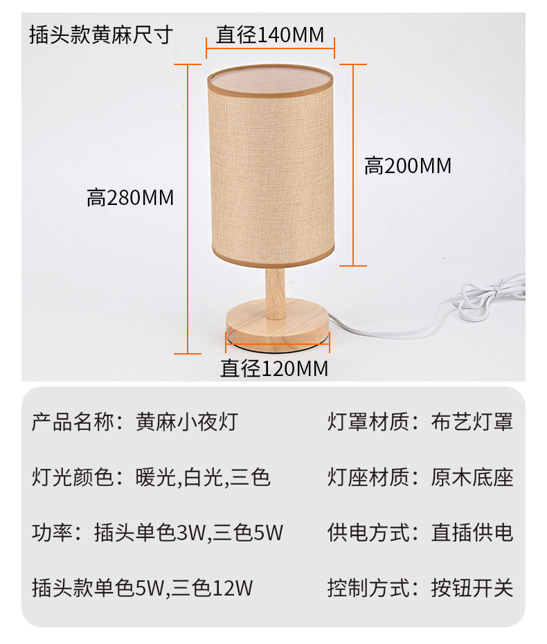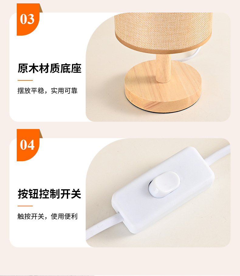 통나무 테이블 램프 간단한 북유럽 장식 패브릭 머리맡 램프 단단한 나무 복고풍 분위기 수제 diy 양각 야간 조명