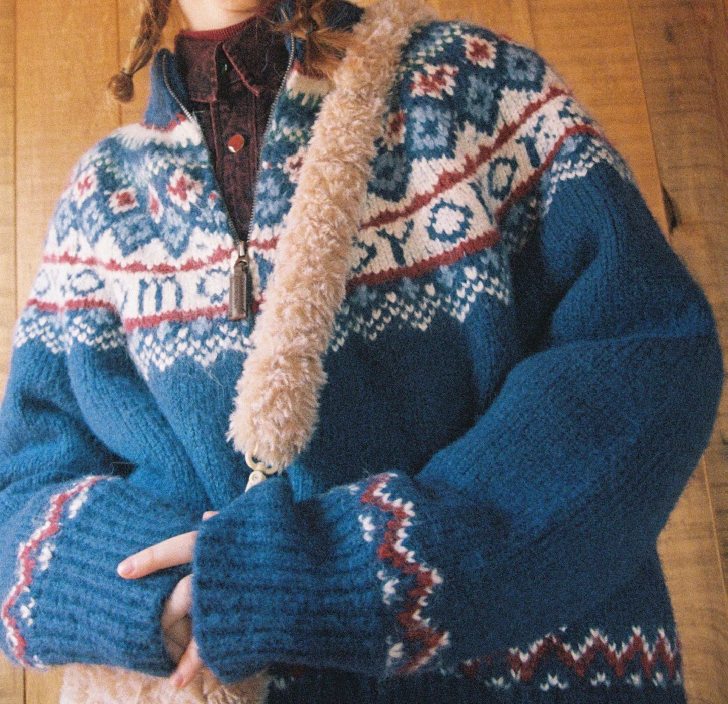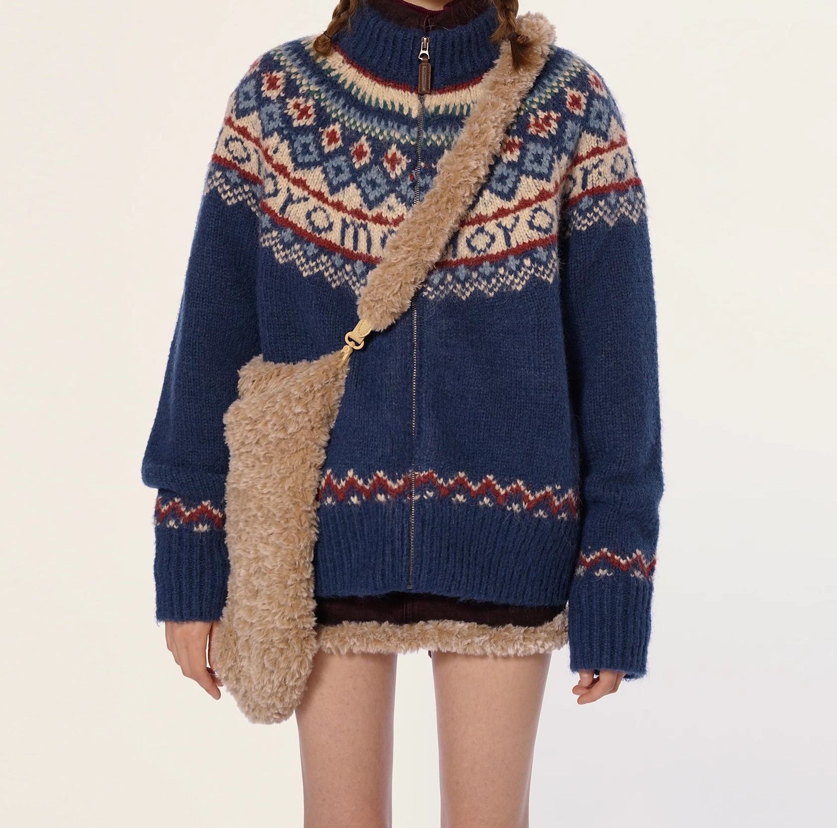 모로 모로 페어아일랜드 빈티지 스웨터 여성 겨울 두꺼운 터틀넥 니트 카디건 느슨한 게으른 대학 코트