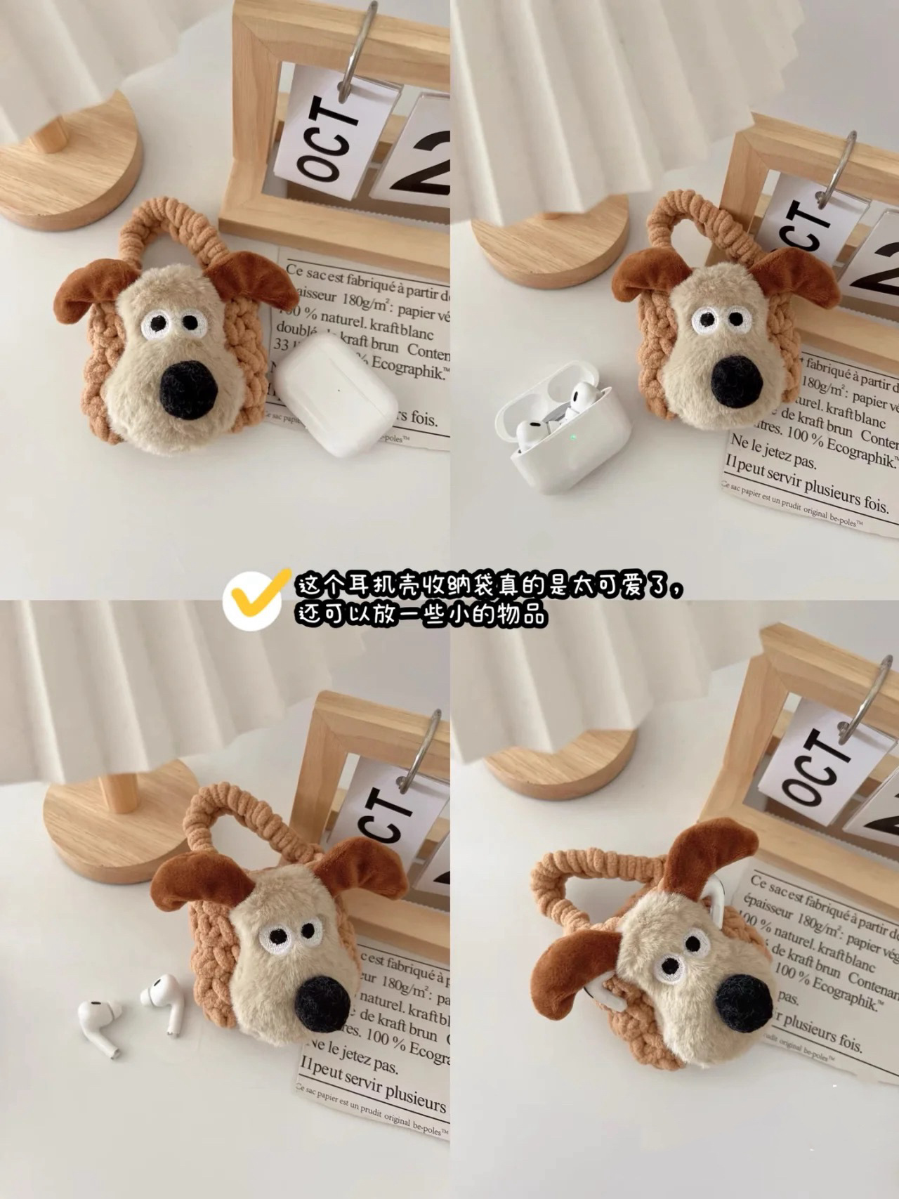 만화 귀여운 큰 귀 개 변경 저장 가방 블루투스 헤드셋 니트 가방 소녀 가방 펜던트 키 체인 이어폰 케이스스토어 가기