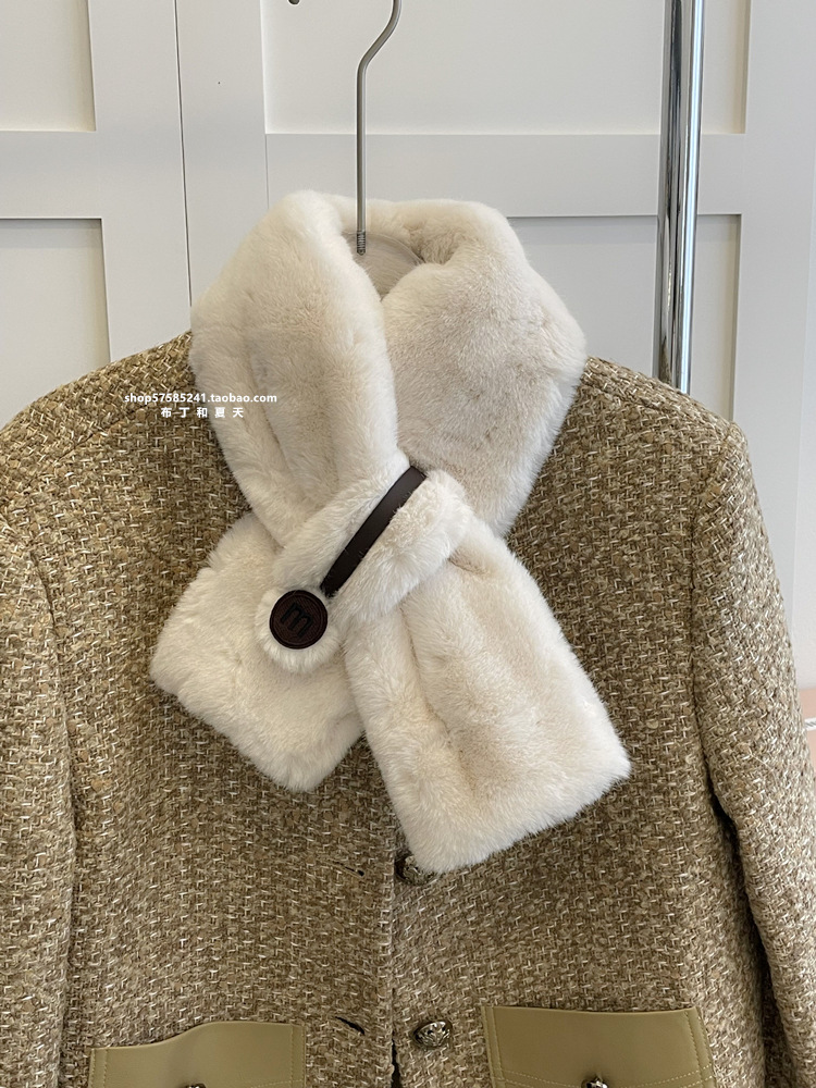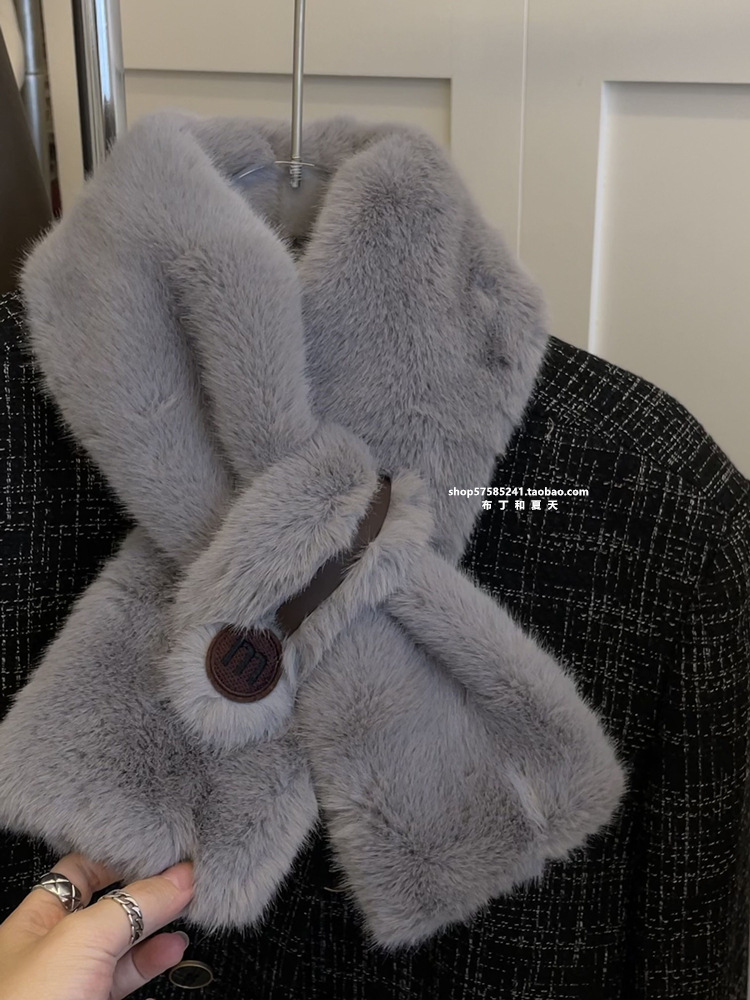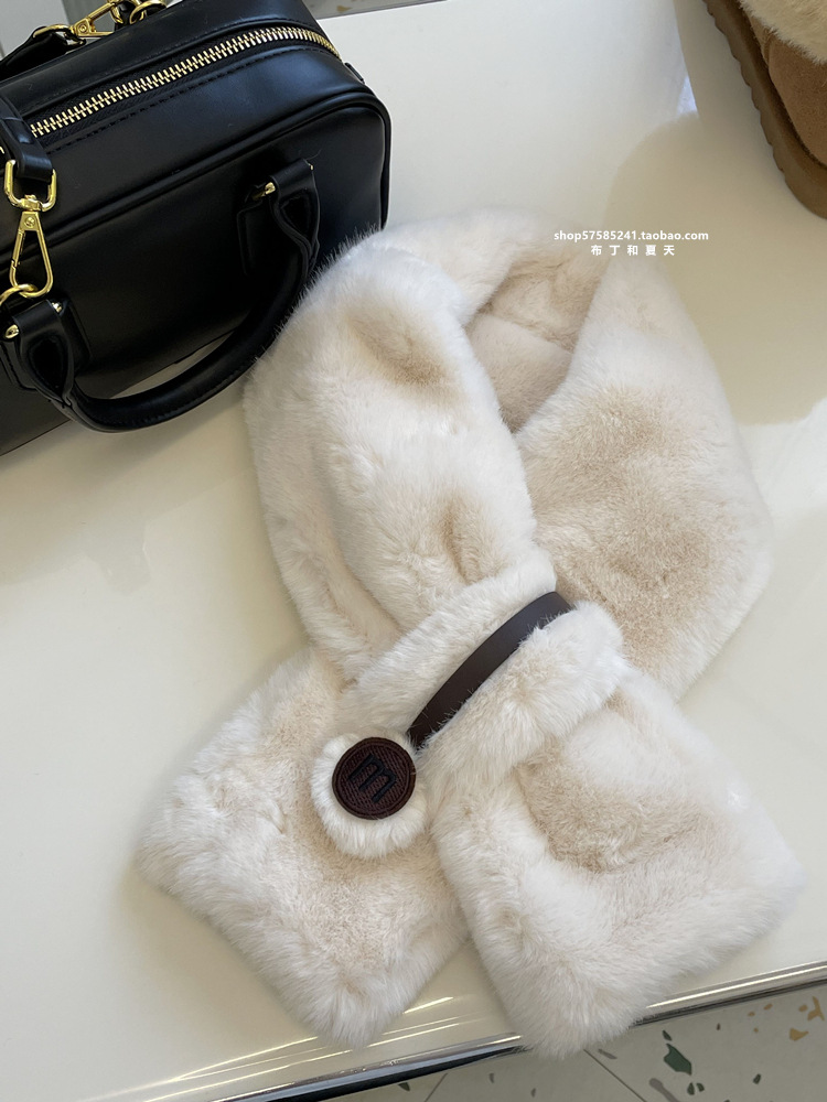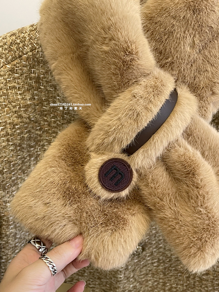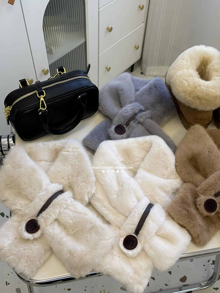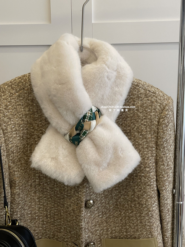 고급 겨울 봉제 크로스 귀여운 모피 목걸이 여성의 두꺼운 따뜻한 겨울 모방 토끼 모피 스카프 목 보호 스카프스토어 가기