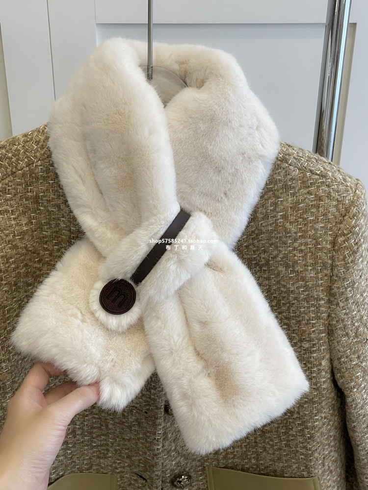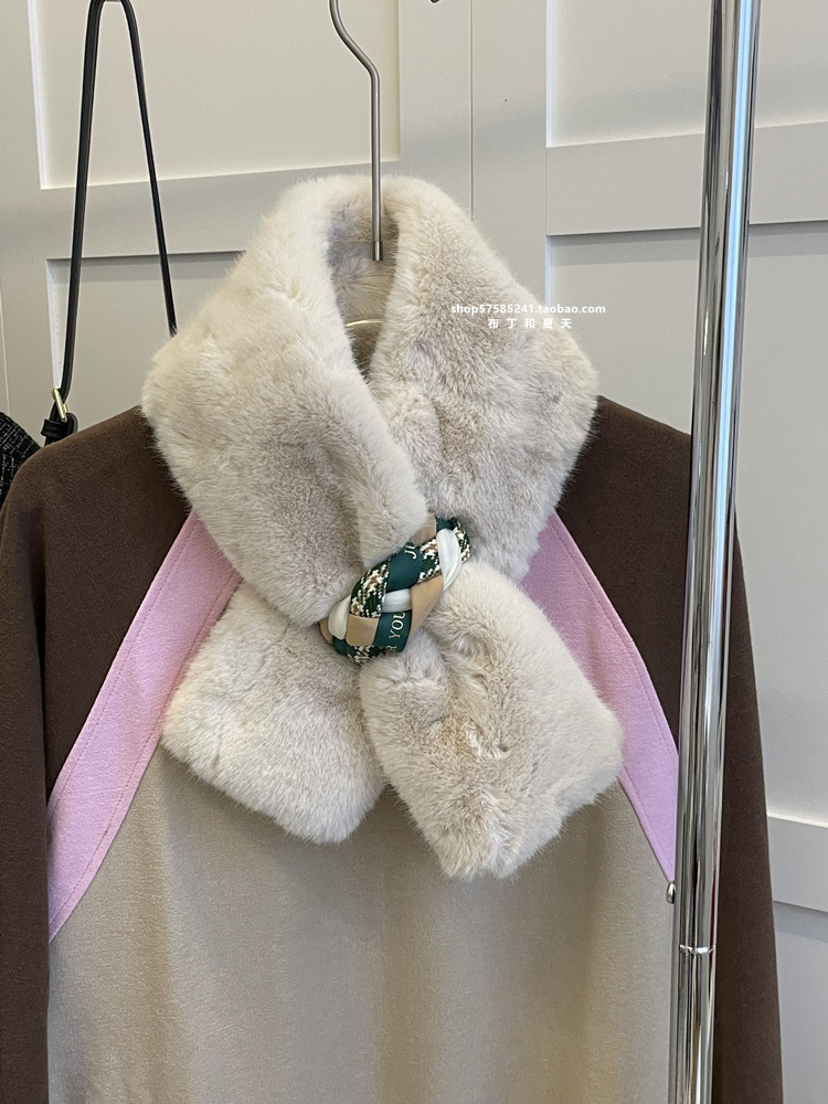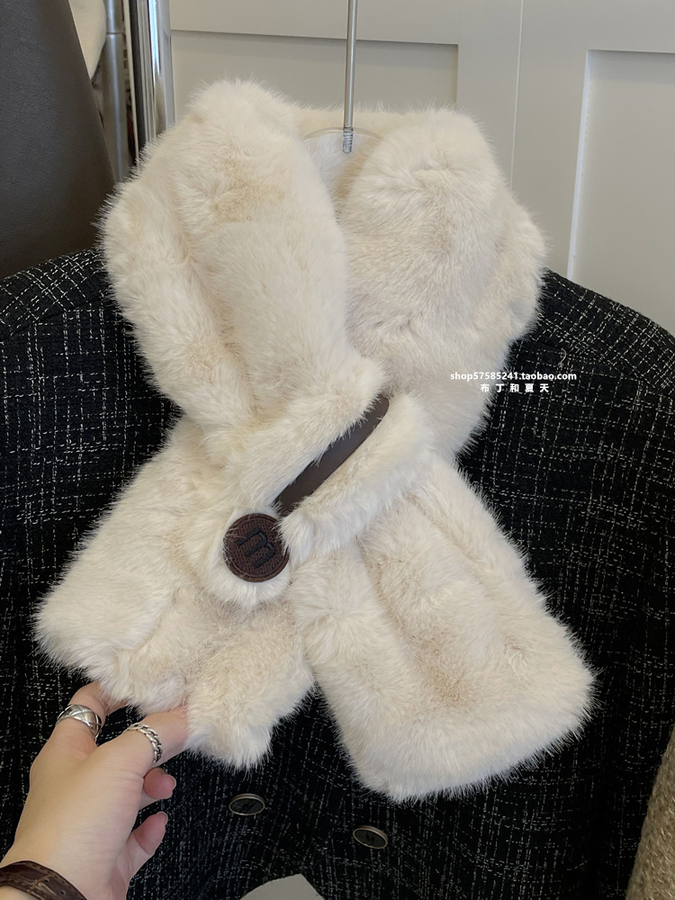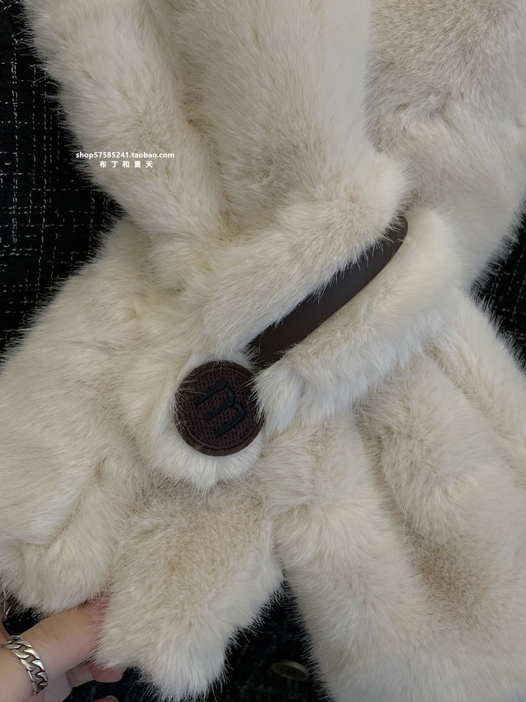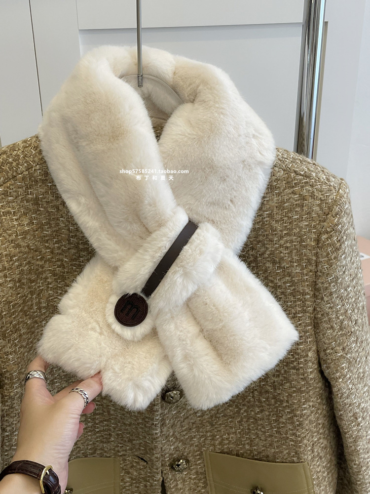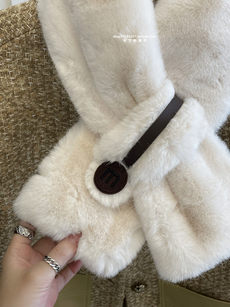 고급 겨울 봉제 크로스 귀여운 모피 목걸이 여성의 두꺼운 따뜻한 겨울 모방 토끼 모피 스카프 목 보호 스카프스토어 가기