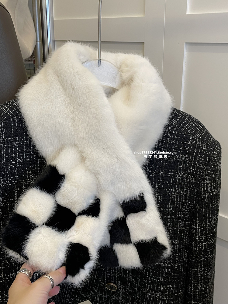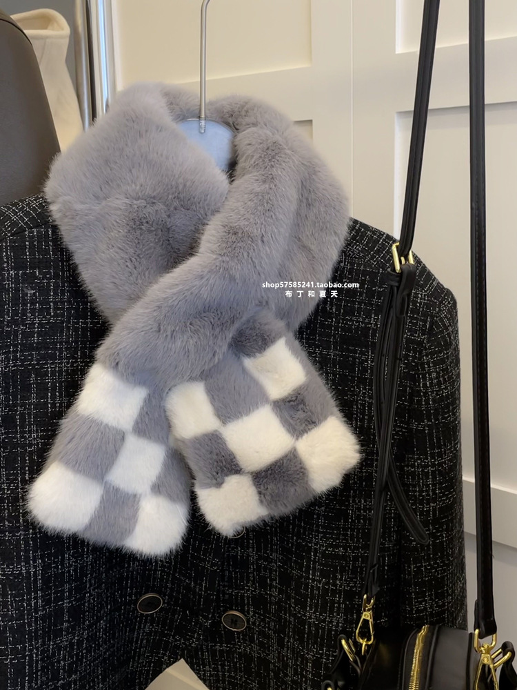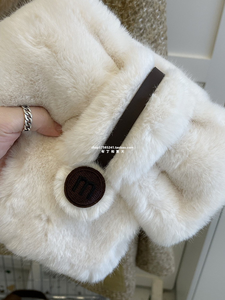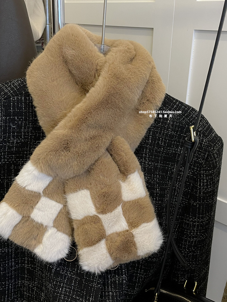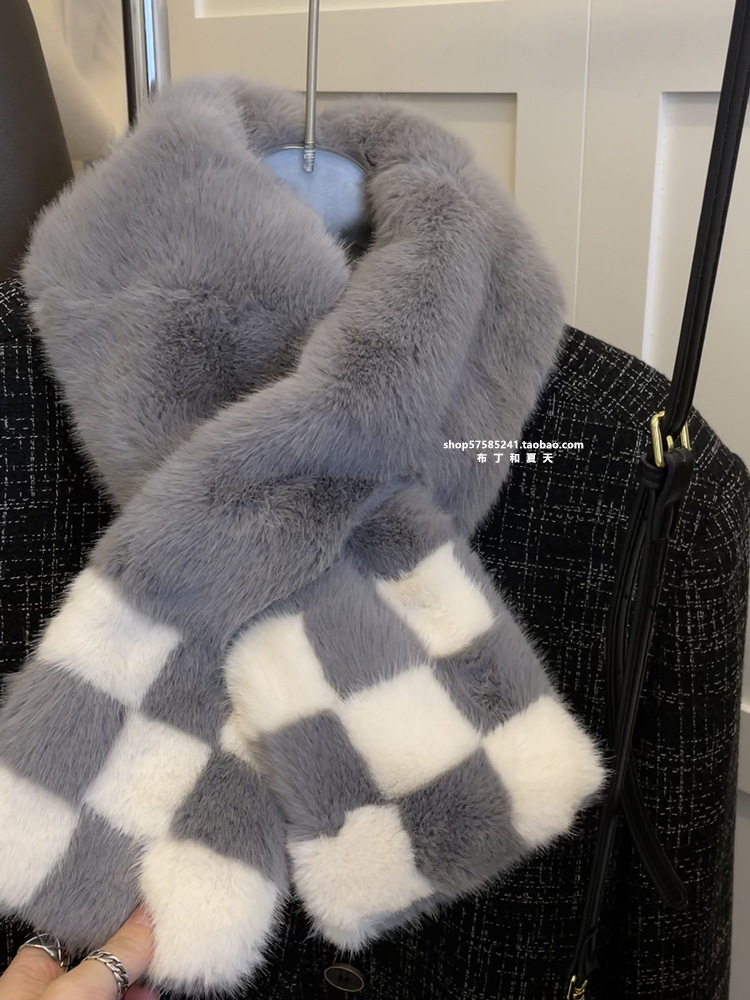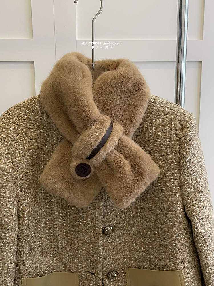 고급 겨울 봉제 크로스 귀여운 모피 목걸이 여성의 두꺼운 따뜻한 겨울 모방 토끼 모피 스카프 목 보호 스카프스토어 가기