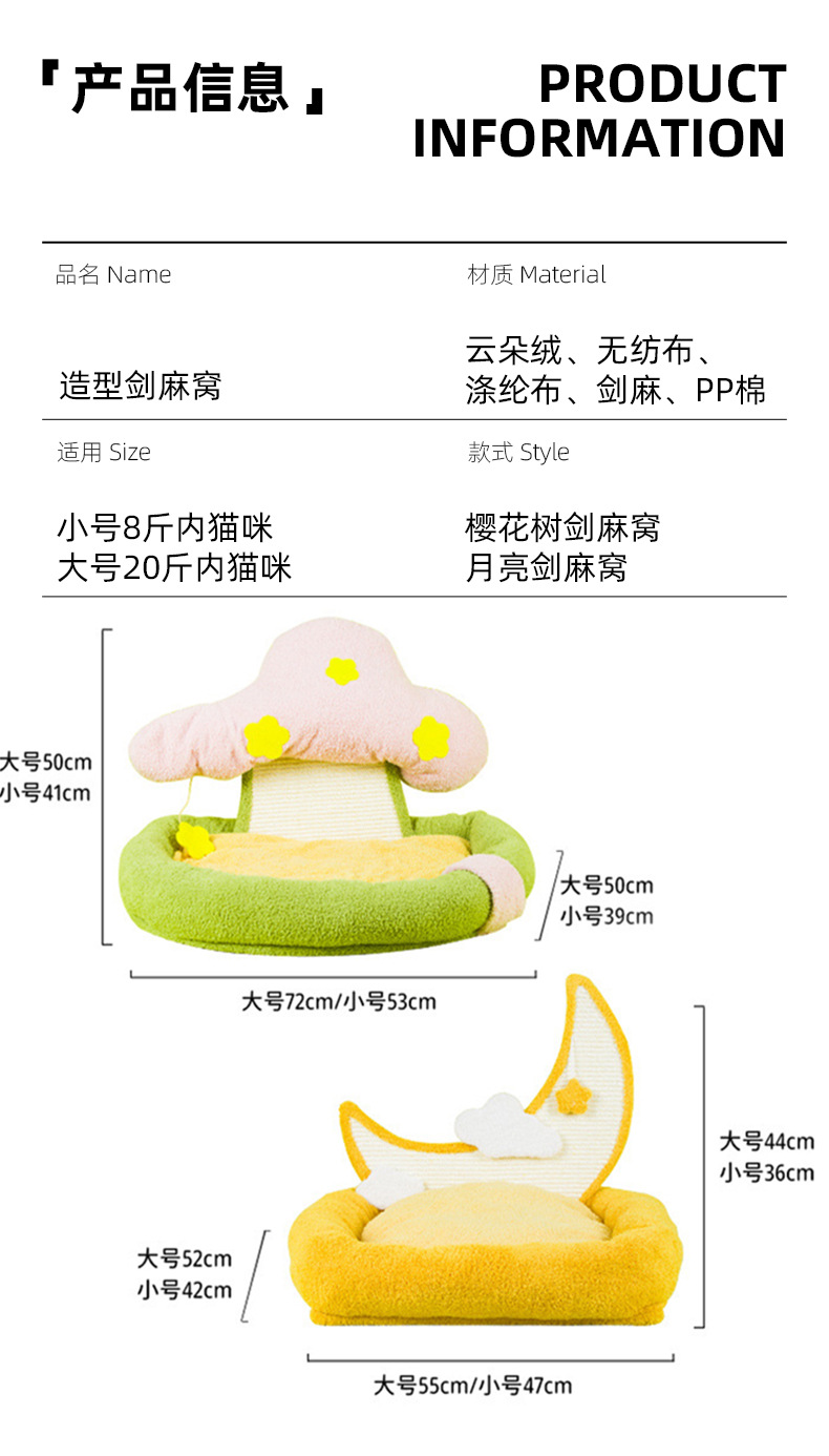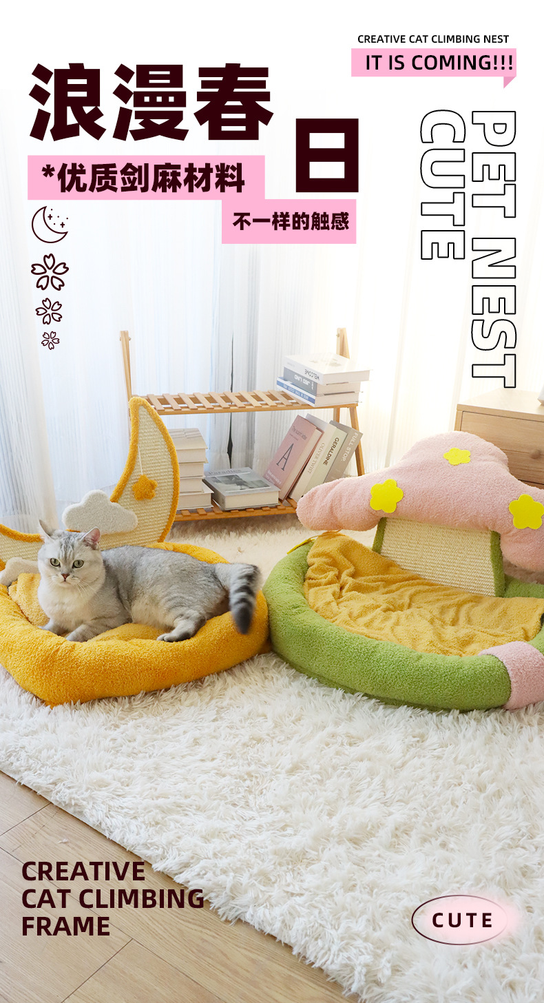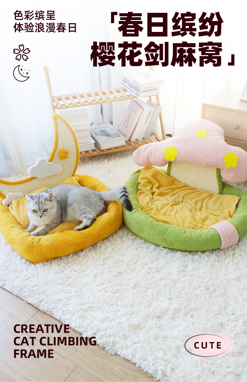 사이잘라 펫 웨이브 캣타워 겨울용 고양이 침대 따뜻한 오픈형 탈부착 가능 고양이 소파 고양이 장난감 공