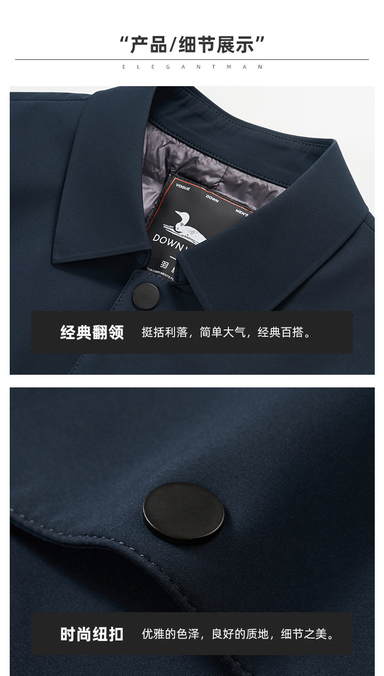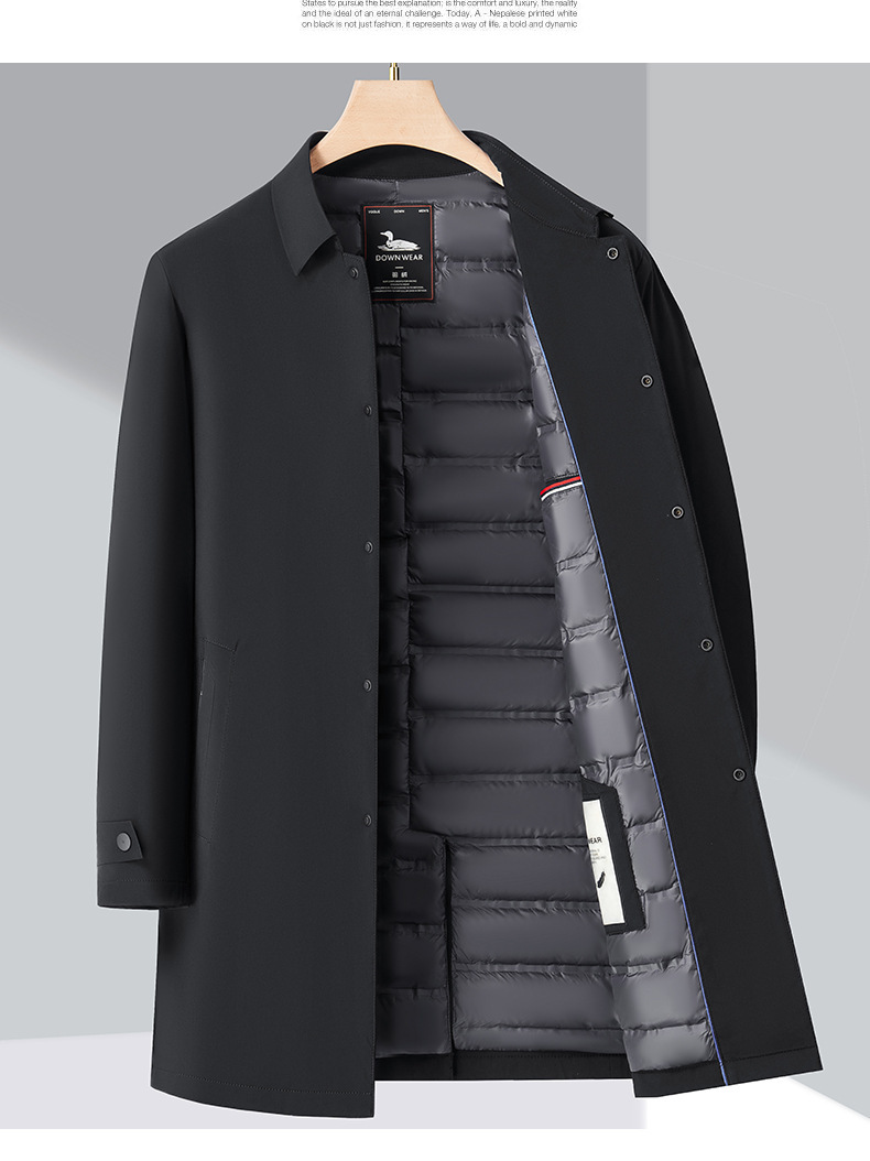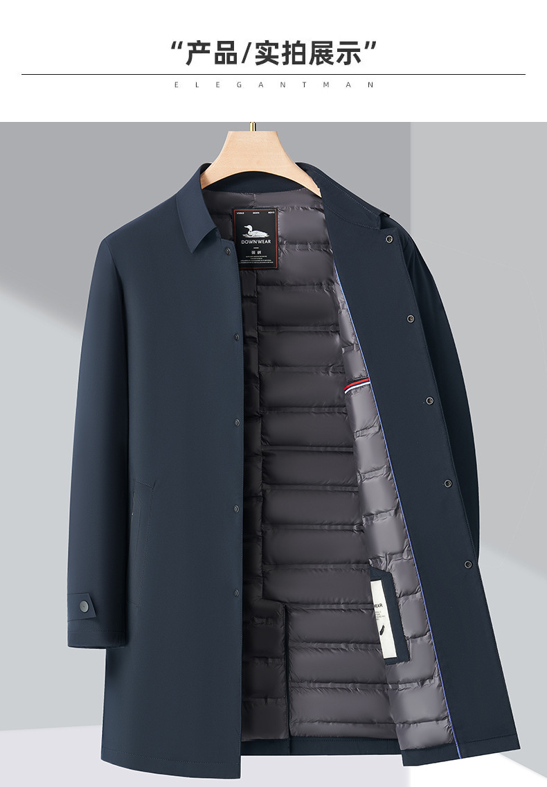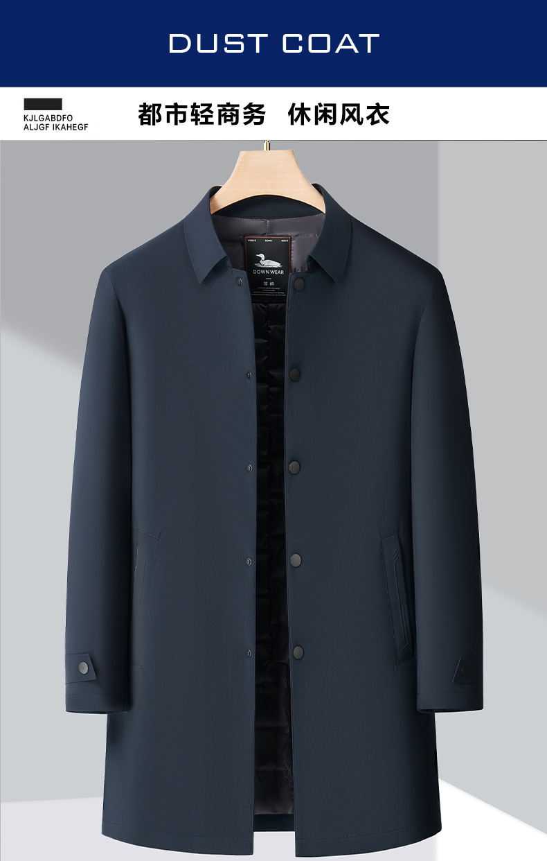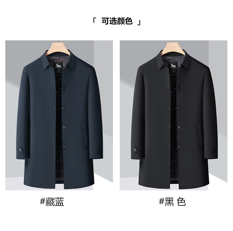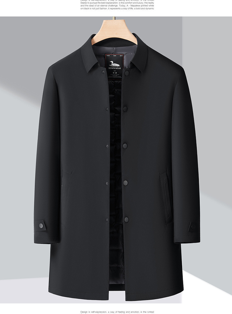 중년 남성 화이트 덕 다운 재킷 중간 길이 겨울 따뜻한 비즈니스 캐주얼 방한 아빠 라펠 재킷