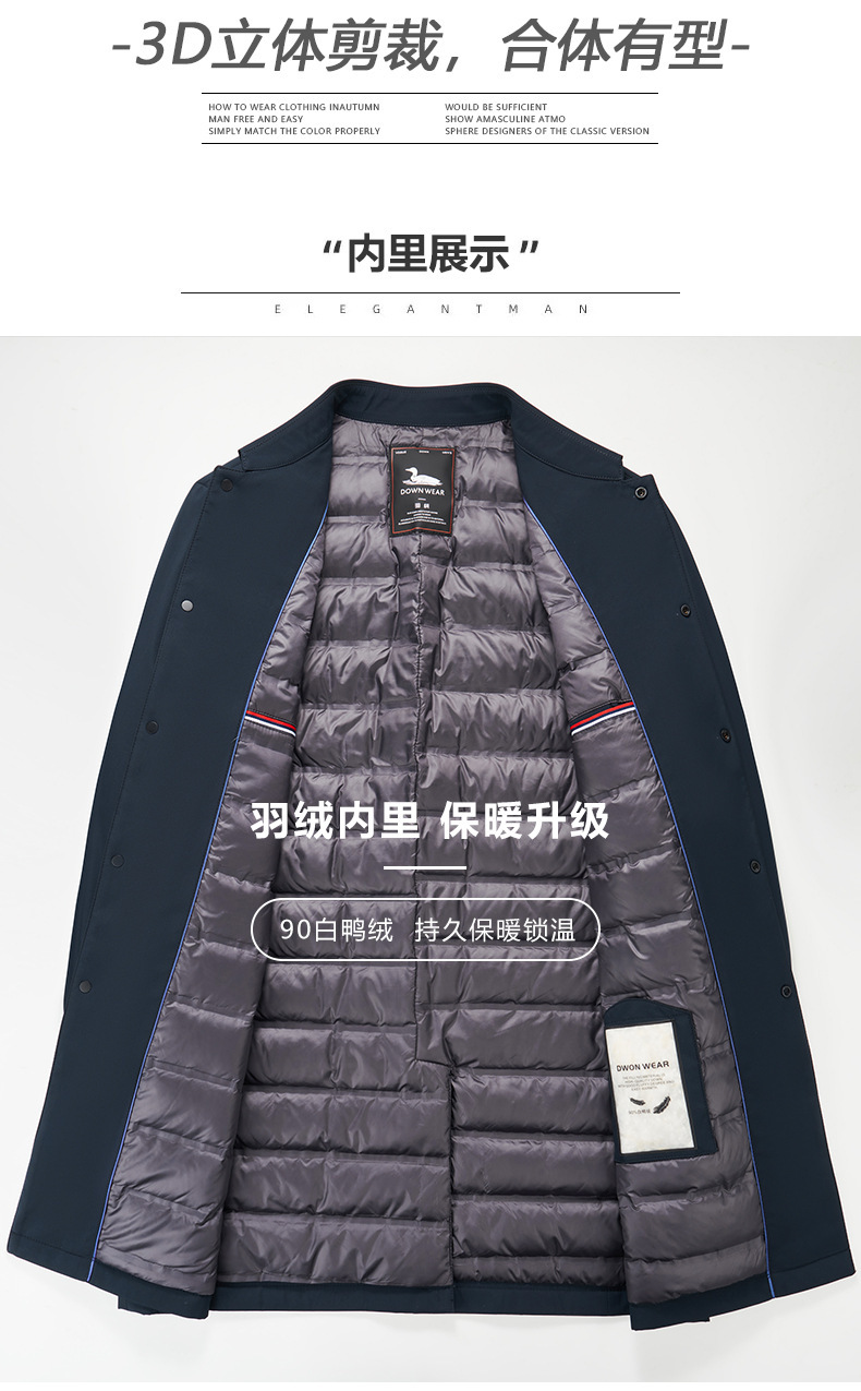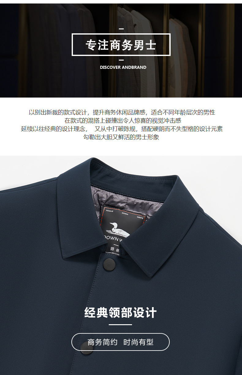 중년 남성 화이트 덕 다운 재킷 중간 길이 겨울 따뜻한 비즈니스 캐주얼 방한 아빠 라펠 재킷스토어 가기
