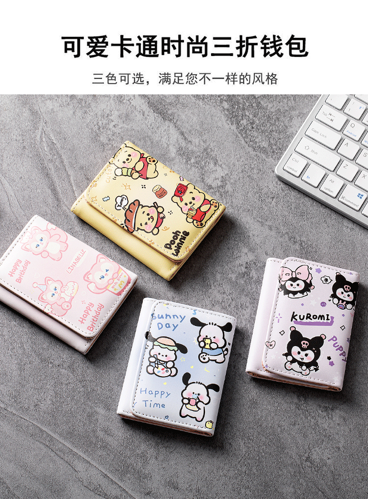 원래 새로운 쿨로 미 귀여운 만화 작은 지갑 귀여운 대용량 지갑 3 배 인터넷 유명 인사 짧은 지갑스토어 가기