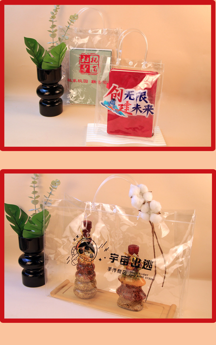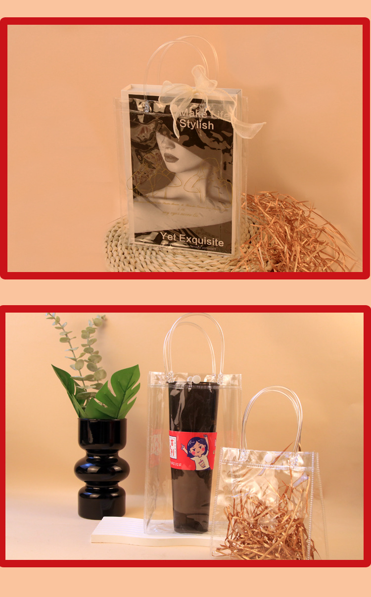 도매 기념품 비닐봉투 인스 스타일 꽃 장식품 가방 PVC 투명 핸드백 보관 도매가스토어 가기