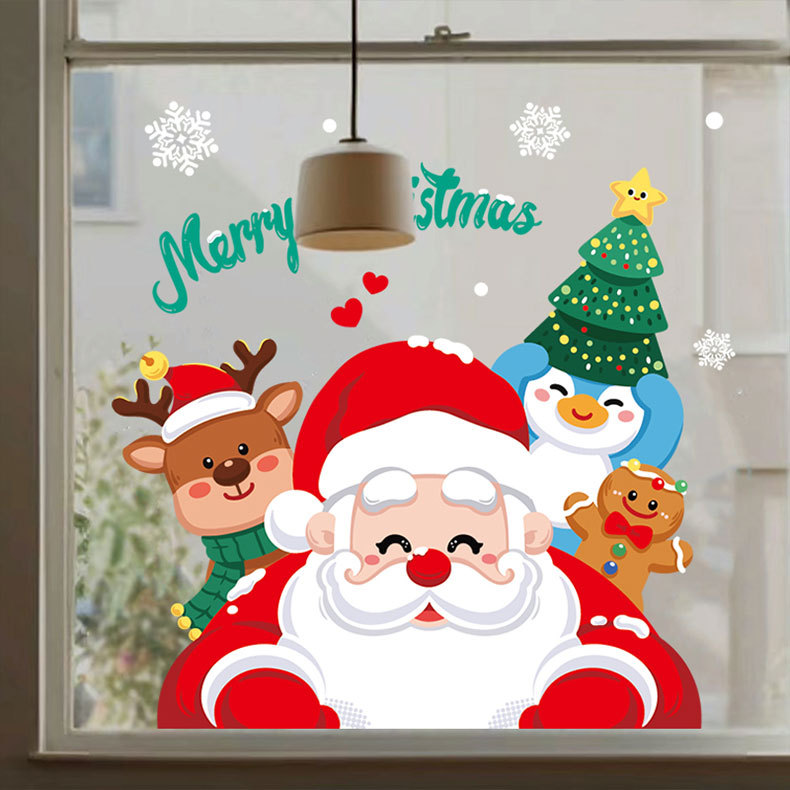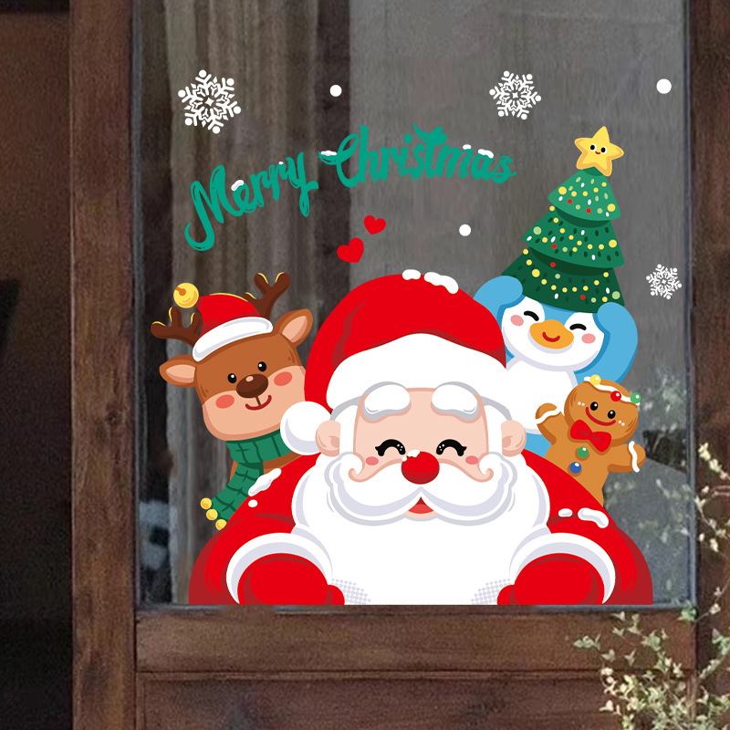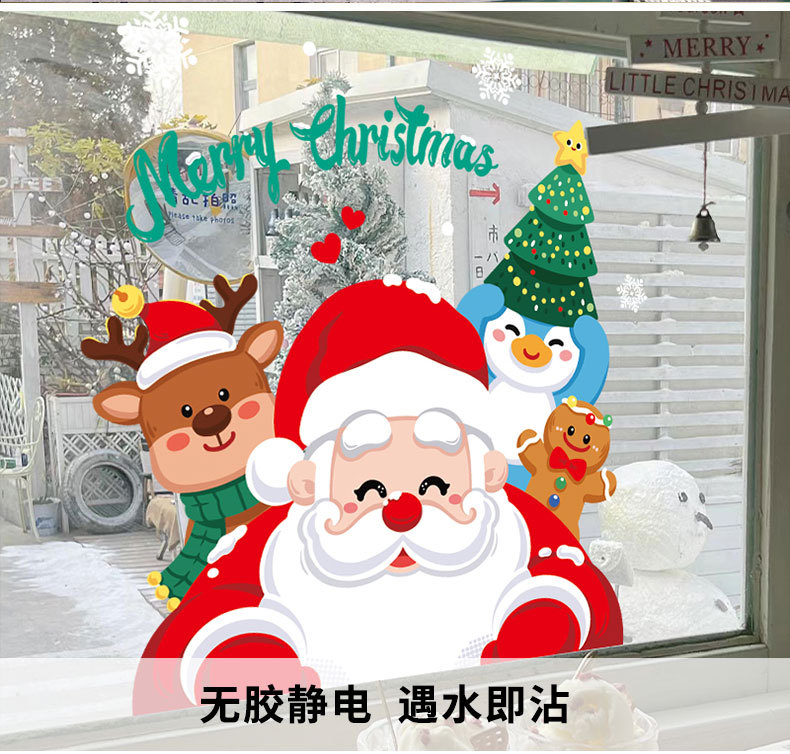 2024 크리스마스 장식 쇼핑몰 창 크리스마스 레이아웃 정적 스티커 우유 차 가게 커피 숍 산타 클로스 스티커스토어 가기