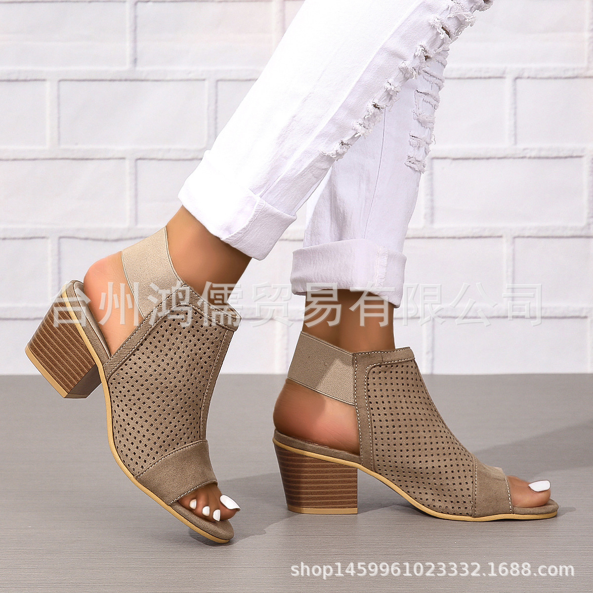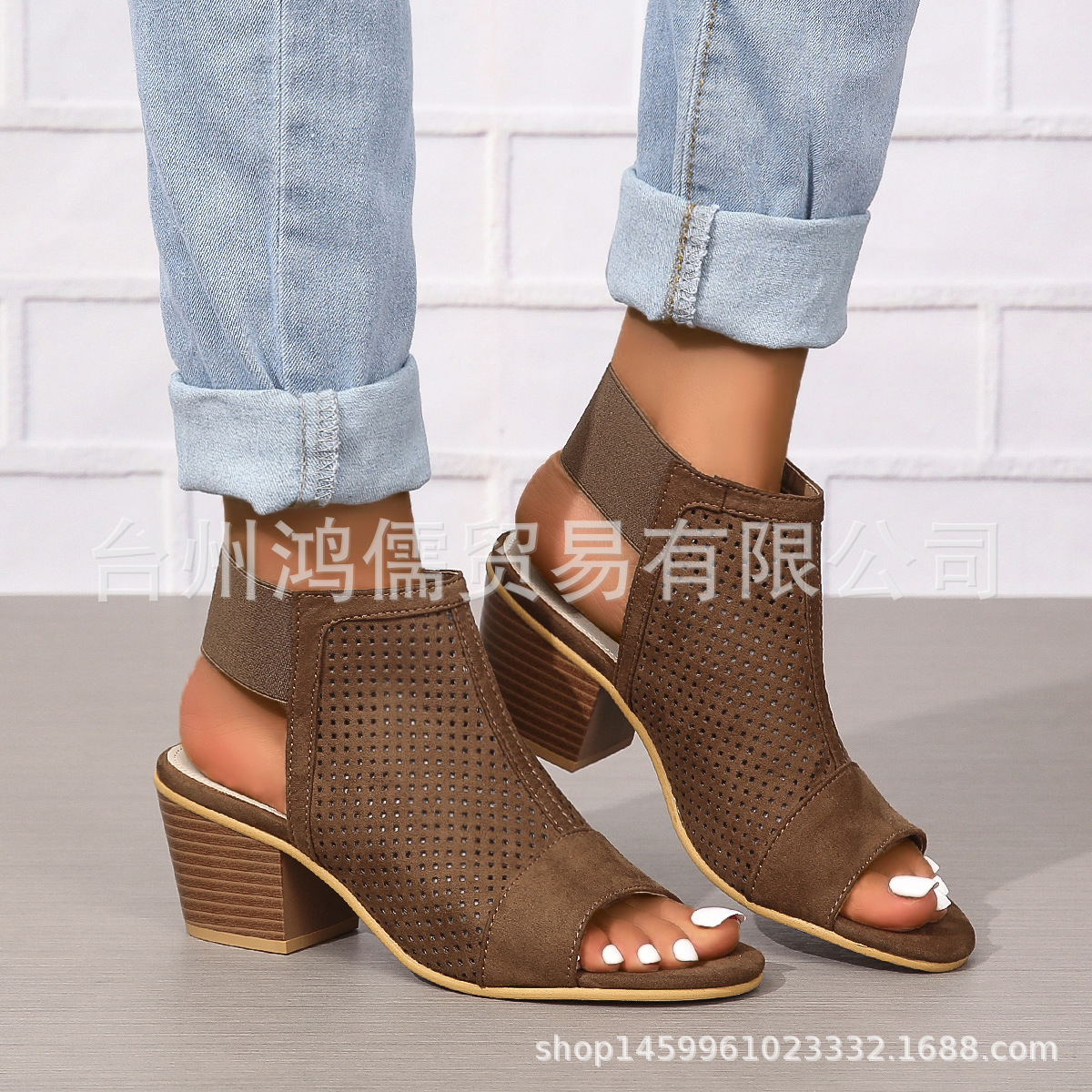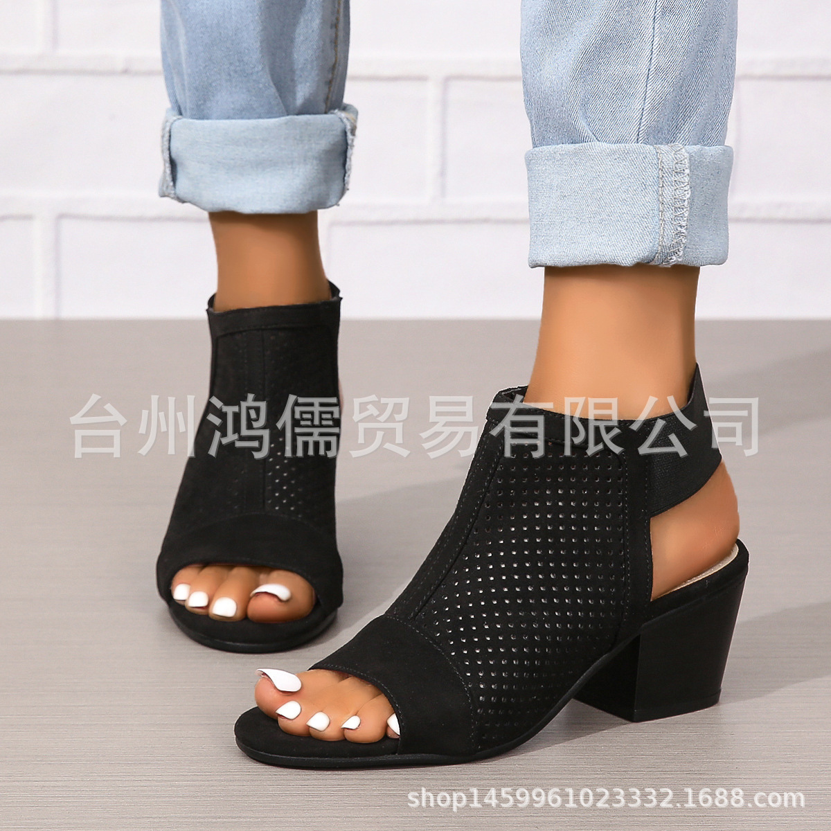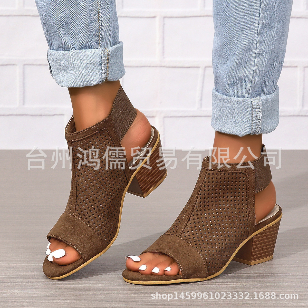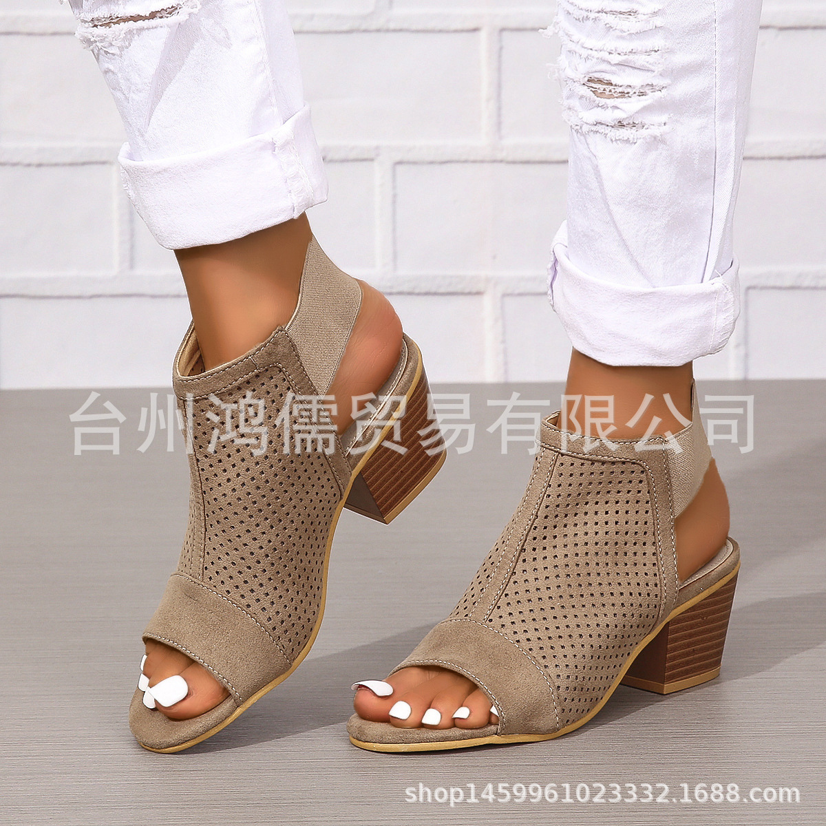 새로운 유럽과 미국의 재고 둥근 발가락 패션 대외 무역 플러스 사이즈 하이힐 여성 신발 단색 슬립 온 여성용 샌들스토어 가기