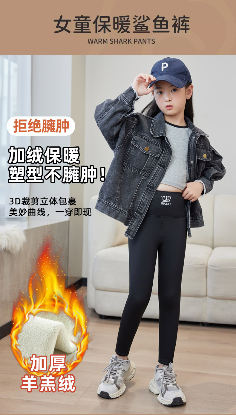 소녀 레깅스 가을과 겨울 기모 2023 새로운 어린이 겨울 상어 바지 소녀의 두꺼운 바비 바지스토어 가기