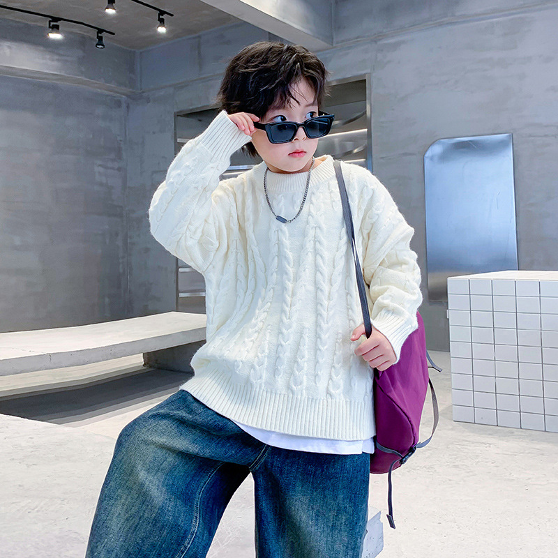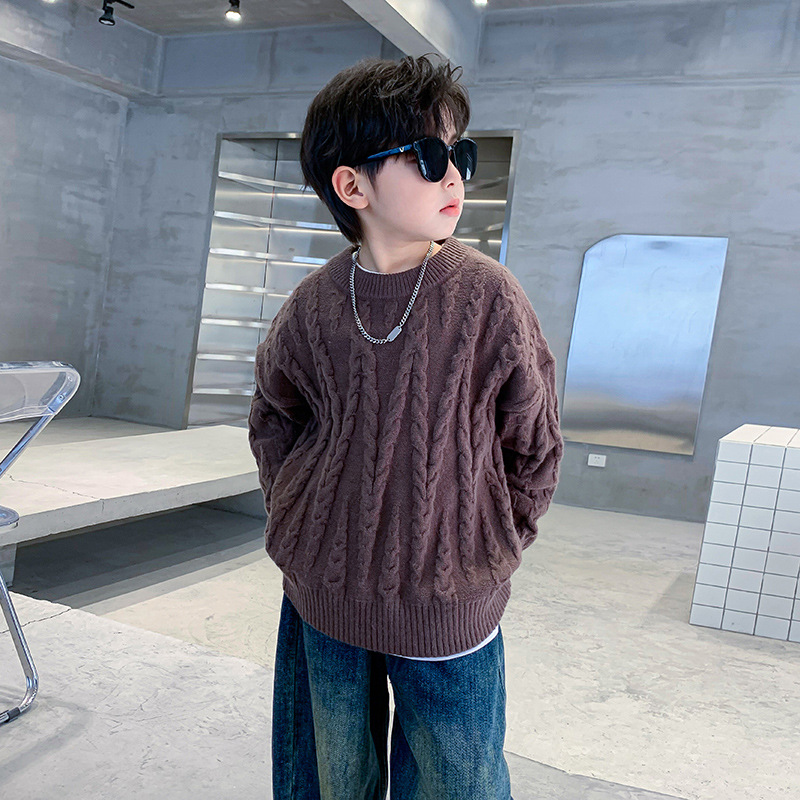 새해맞이 남아용 라운드넥 두꺼운 스웨터 겨울 2025 신상 아동 니트웨어 중대형 어린이용 니트셔츠 남아용
