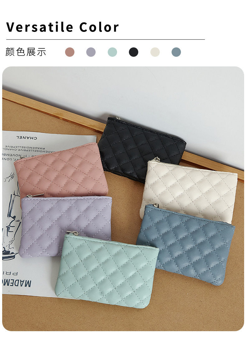 [현장] 2023 새로운 마름모 짧은 PU 부드러운 가죽 동전 지갑 국경 초경량 숙녀 카드 동전 가방