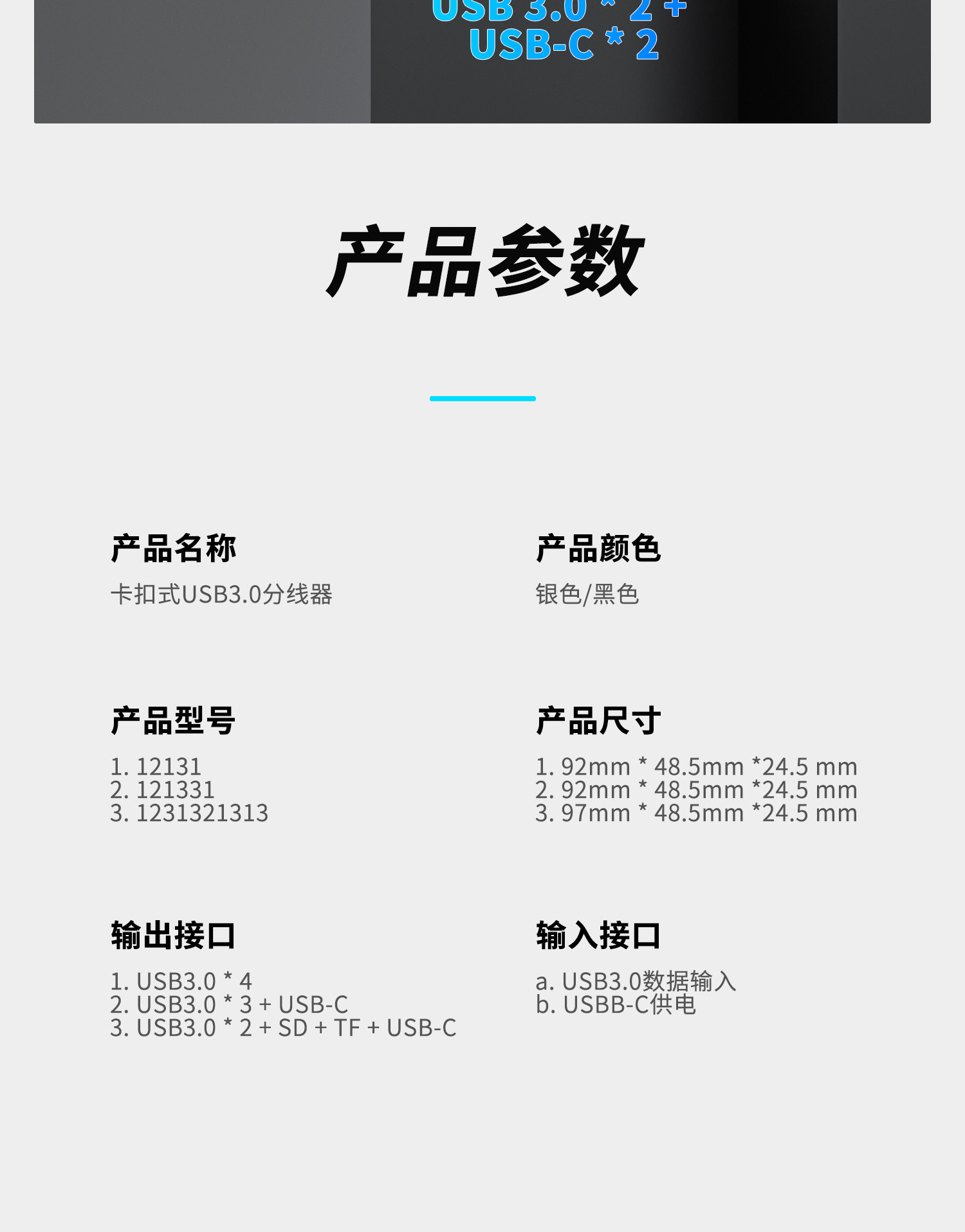 USB3.0 카드 리더 허브 오디오 확장 도크 허브 스냅인 MAC 노트북 데스크톱 컴퓨터 범용 알루미늄