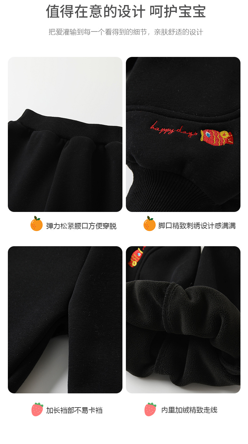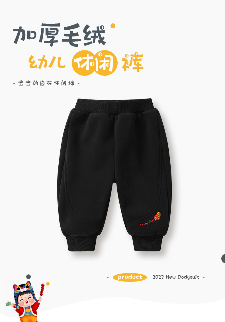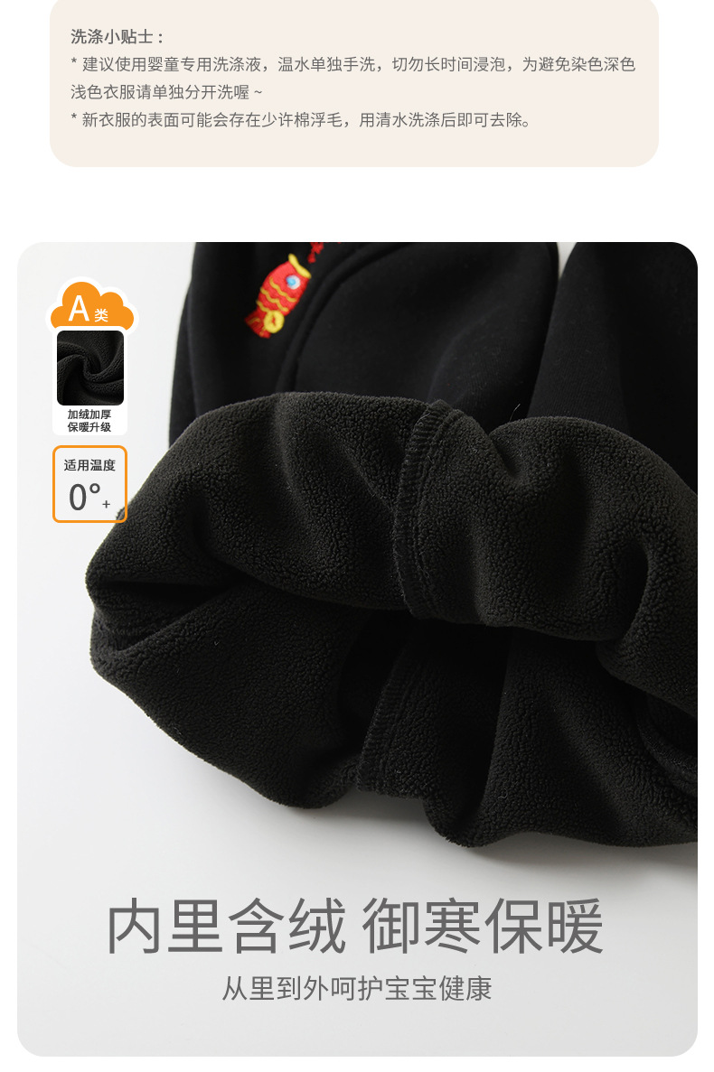 2024 새해 새로운 중국 스타일 어린이 기모 바지 남녀 아기 두꺼운 바지 수 놓은 물고기 패턴