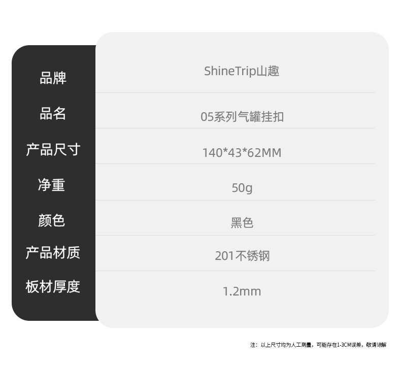 Shanqu 05 야외 IGT 테이블 캠핑 펜던트 스테인레스 스틸 후크 고원 부탄 가스 탱크 액세서리 플랫 가스 탱크 버클