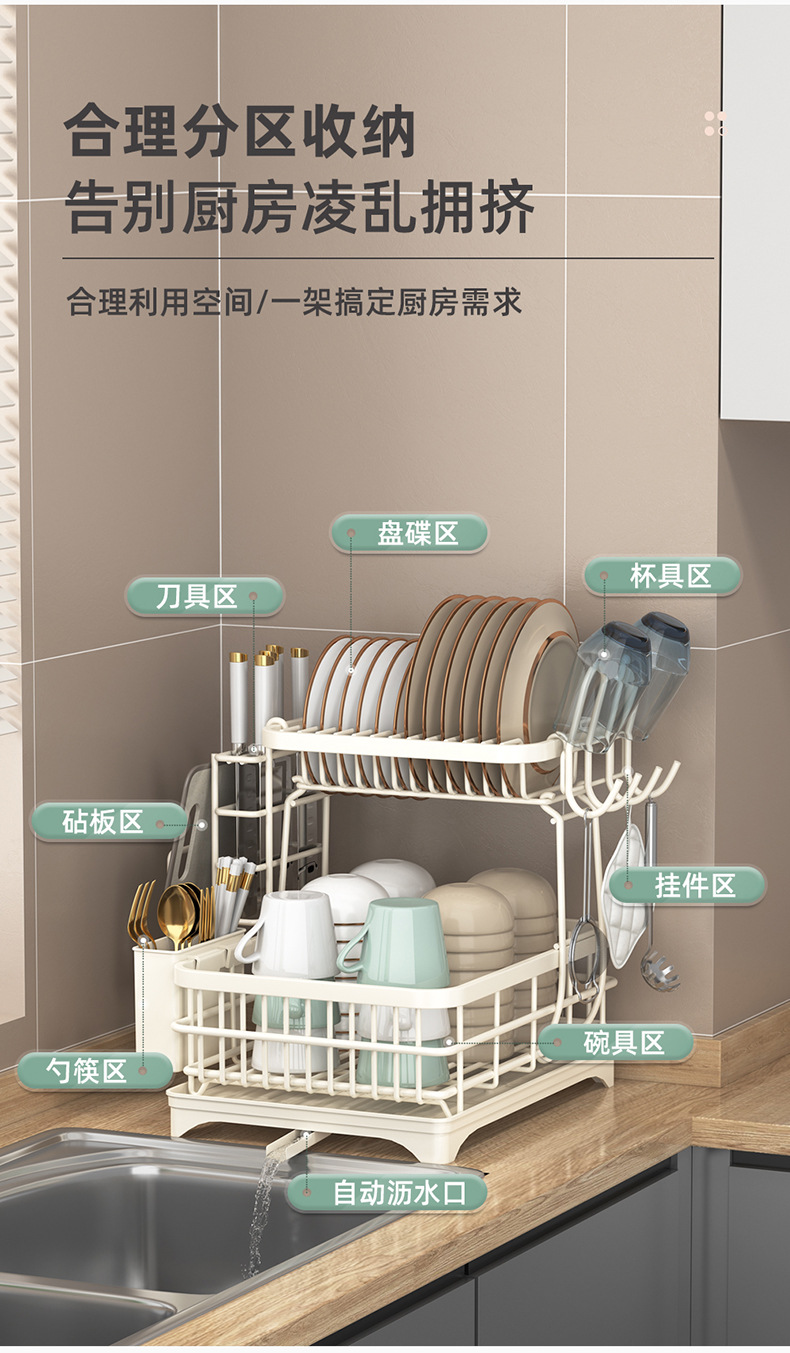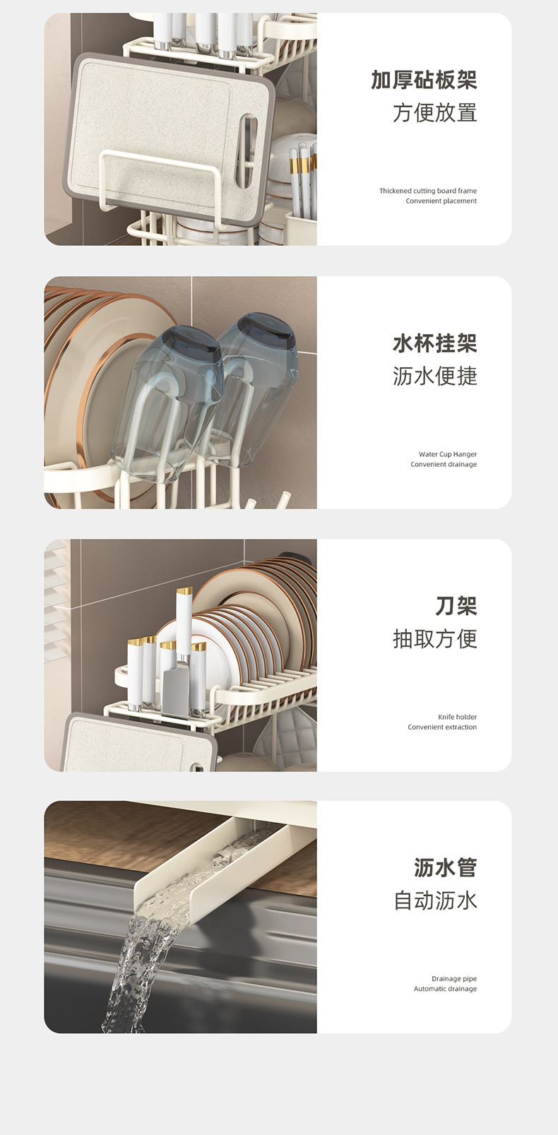 주방 접시 배수 랙 다기능 싱크 스토리지 랙 젓가락 칼 커팅 보드 스토리지 보울 랙 자동 물 하역