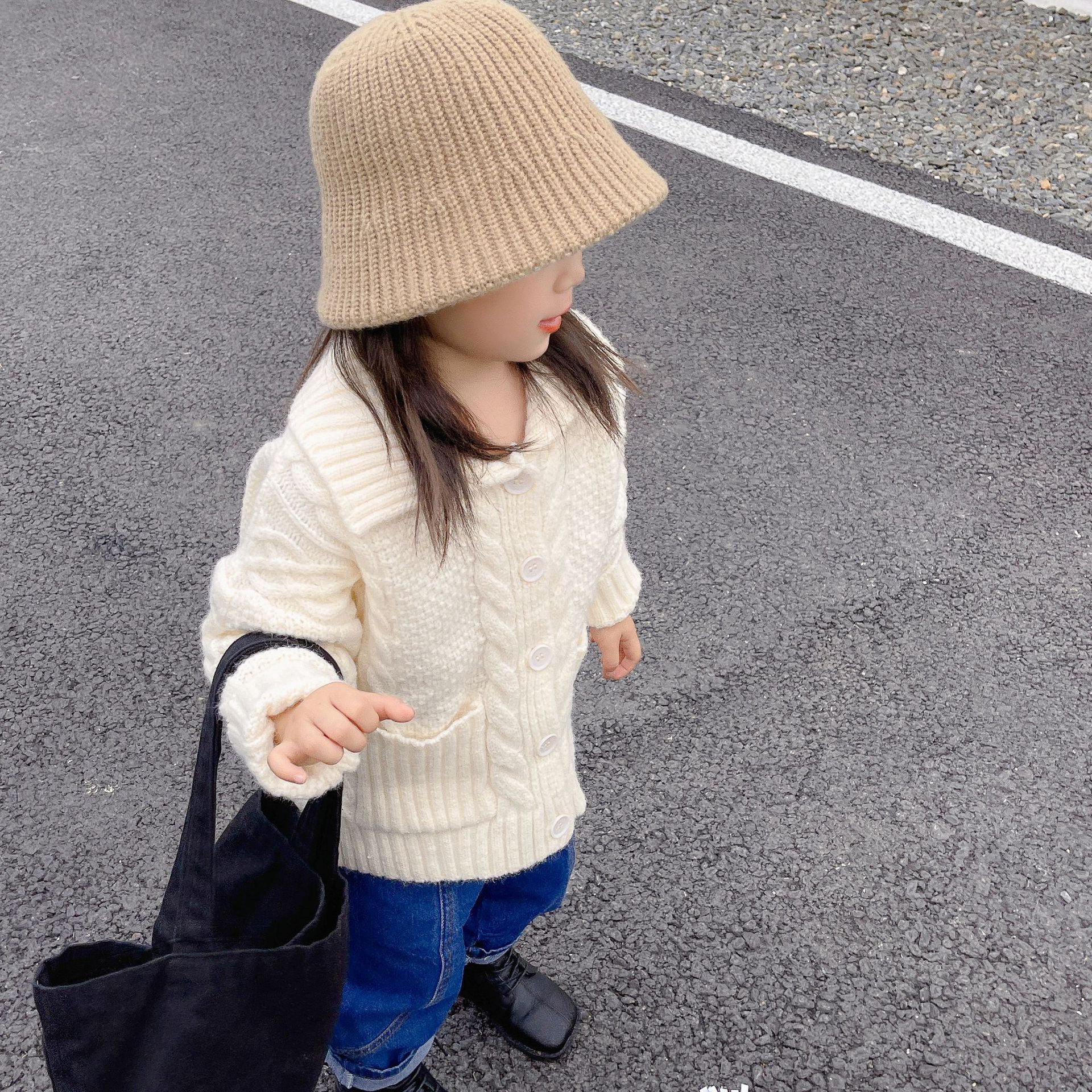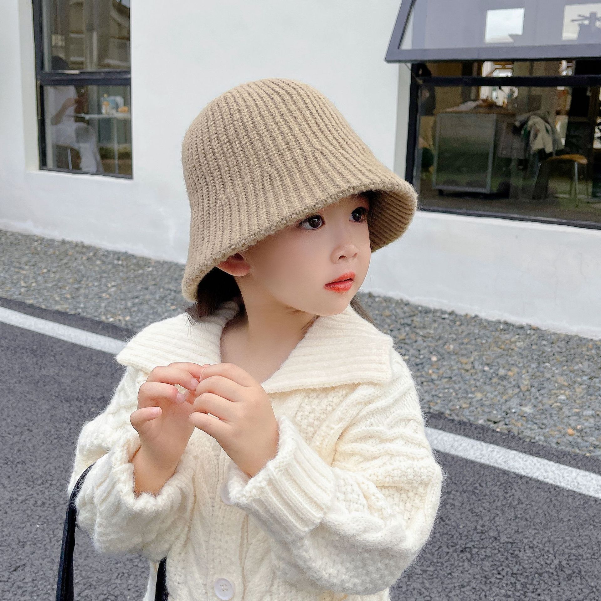 어린이 모자 가을과 겨울 니트 울 모자 소녀의 단색 서양식 어부 모자 양동이 따뜻한 모자 아기 모자스토어 가기