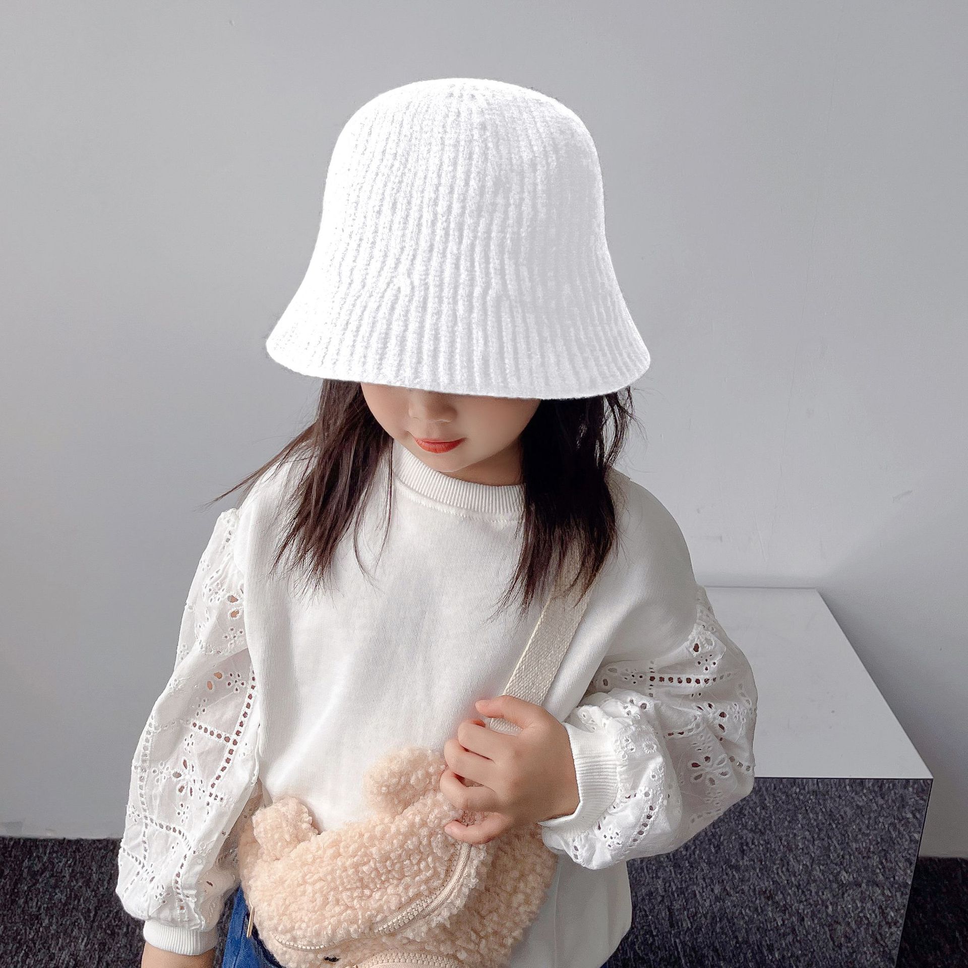 어린이 모자 가을과 겨울 니트 울 모자 소녀의 단색 서양식 어부 모자 양동이 따뜻한 모자 아기 모자