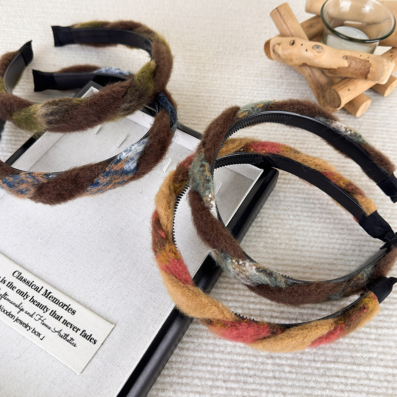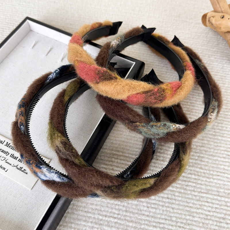 2023 새로운 보헤미안 가을과 겨울 짠 우아한 샤넬 트위스트 머리 후프 와이드 에지 레트로 헤어 번들