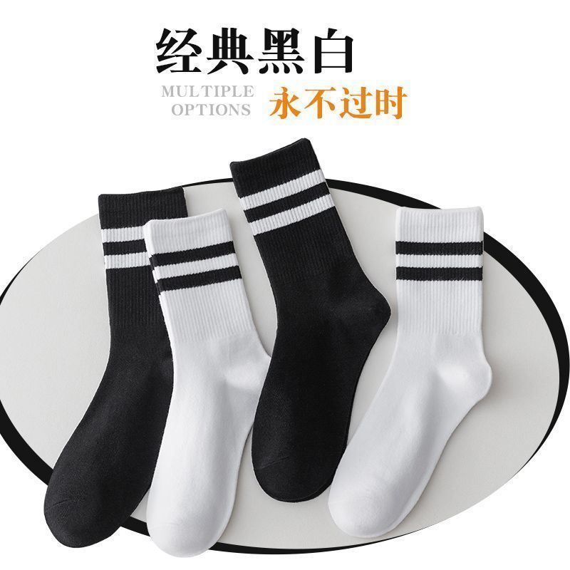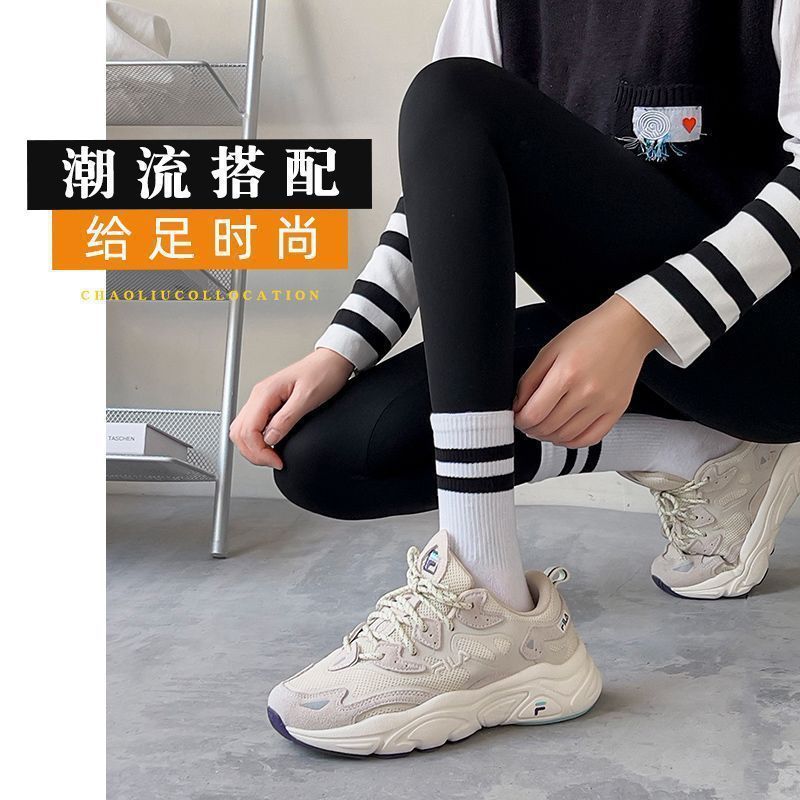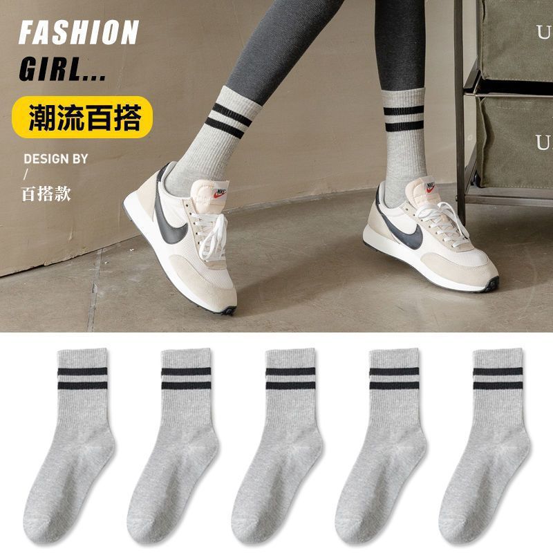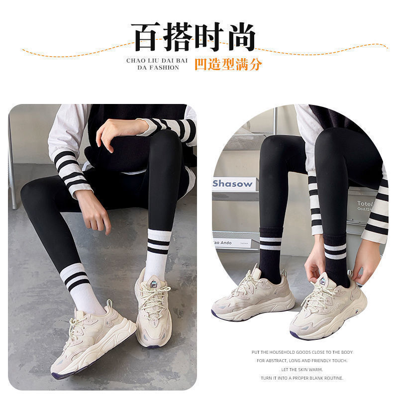 블랙, 화이트 및 그레이 2 바 수평 줄무늬 양말 여성의 가을 및 겨울 중반 종아리 매칭 상어 바지 외부 착용 세련된 양말, 세련된 스타킹
