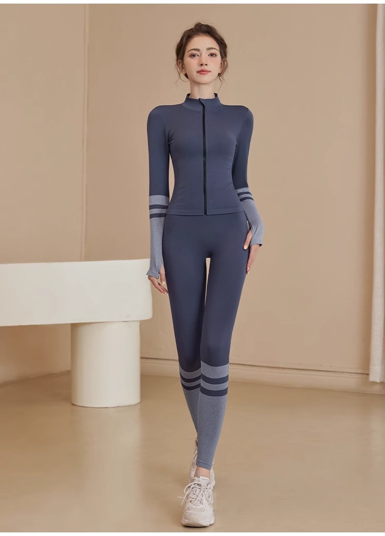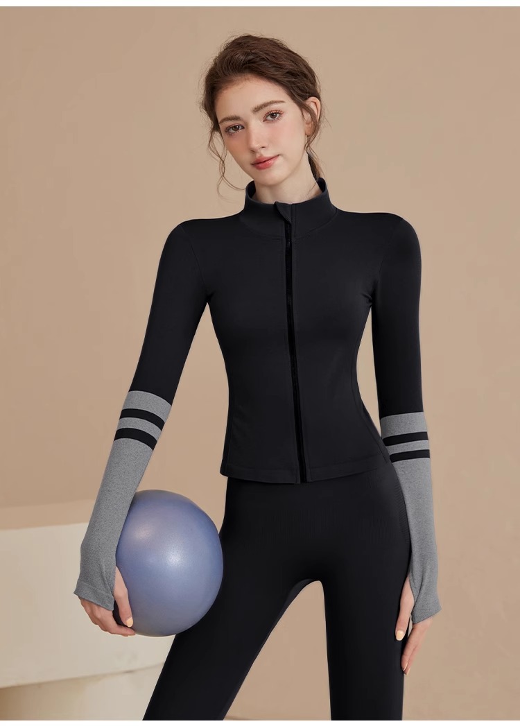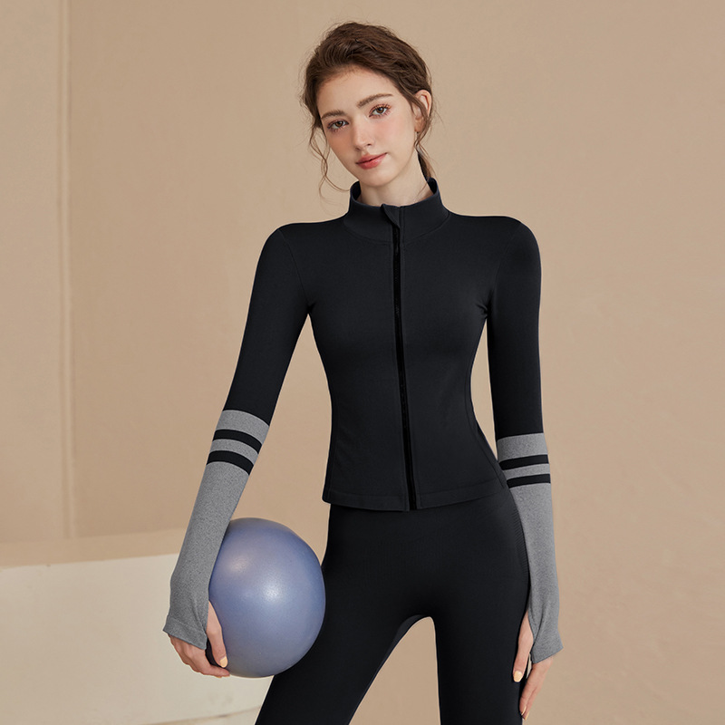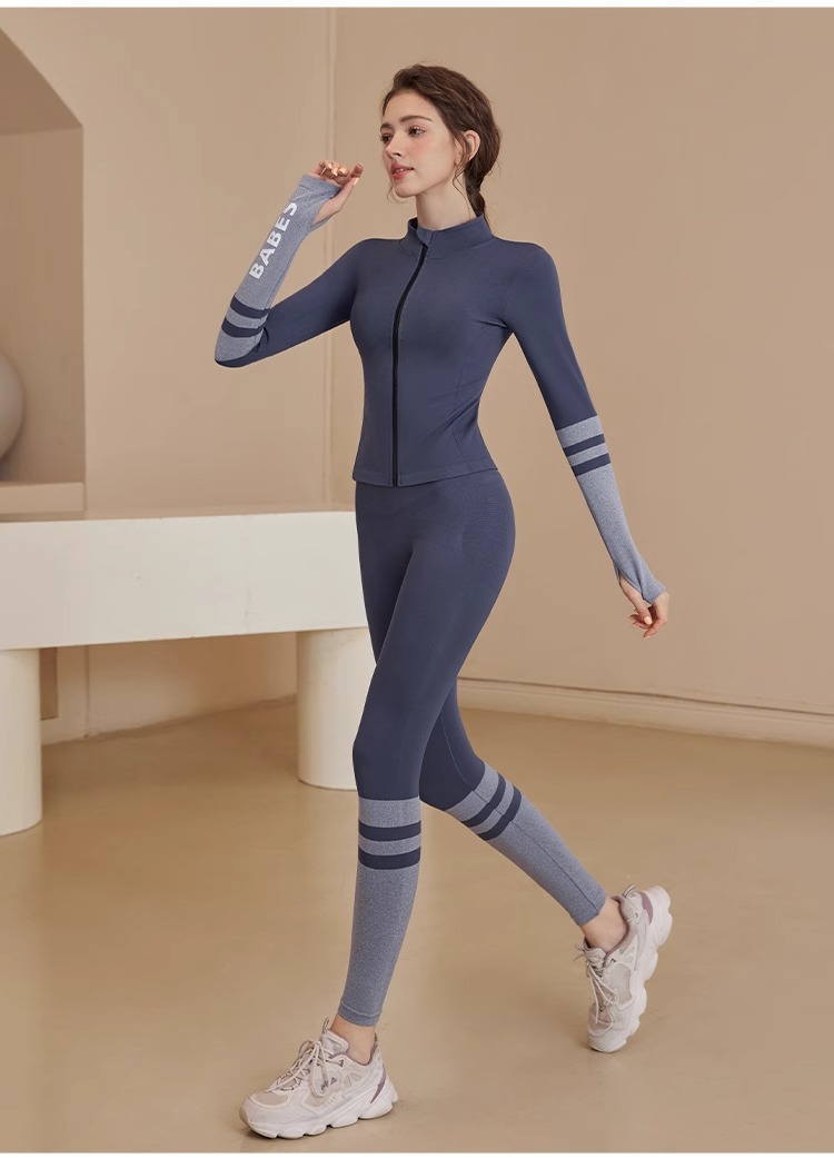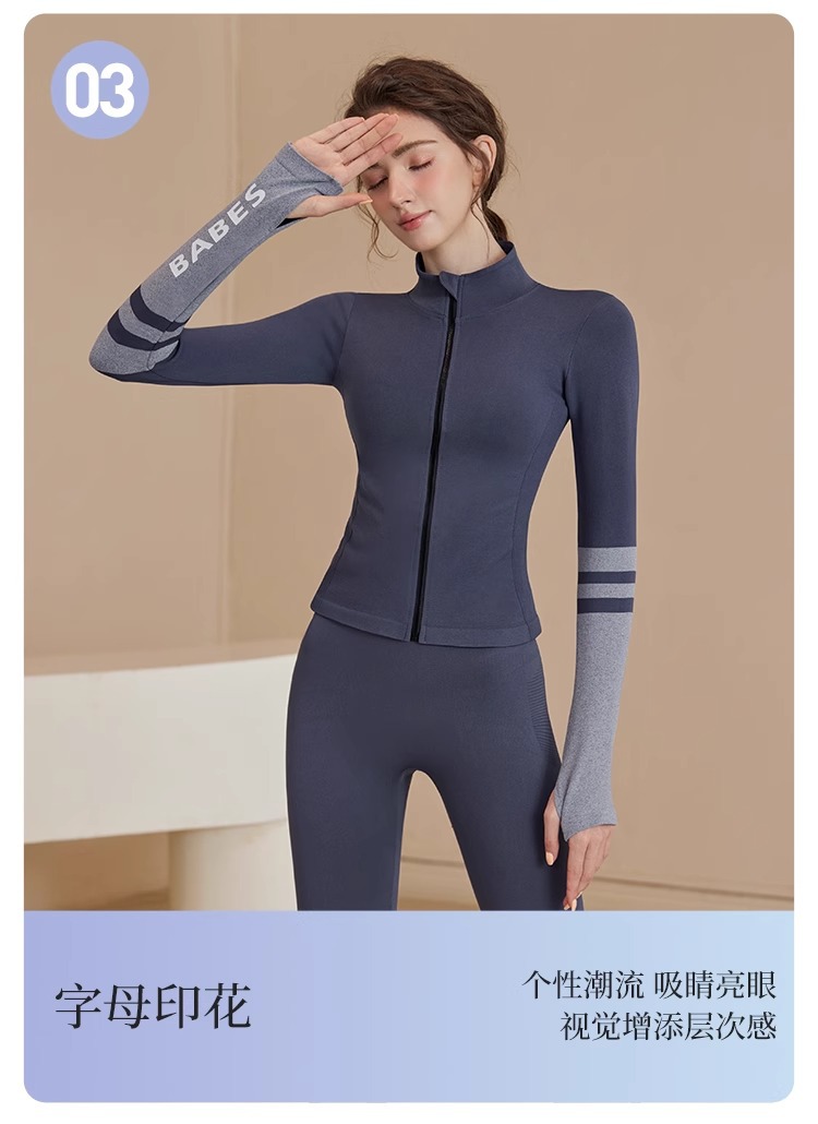 스포츠 재킷 여성의 가을과 겨울 새로운 방풍 요가 옷 달리기 피트니스 옷 프로 스포츠 탑 세트 훈련 옷