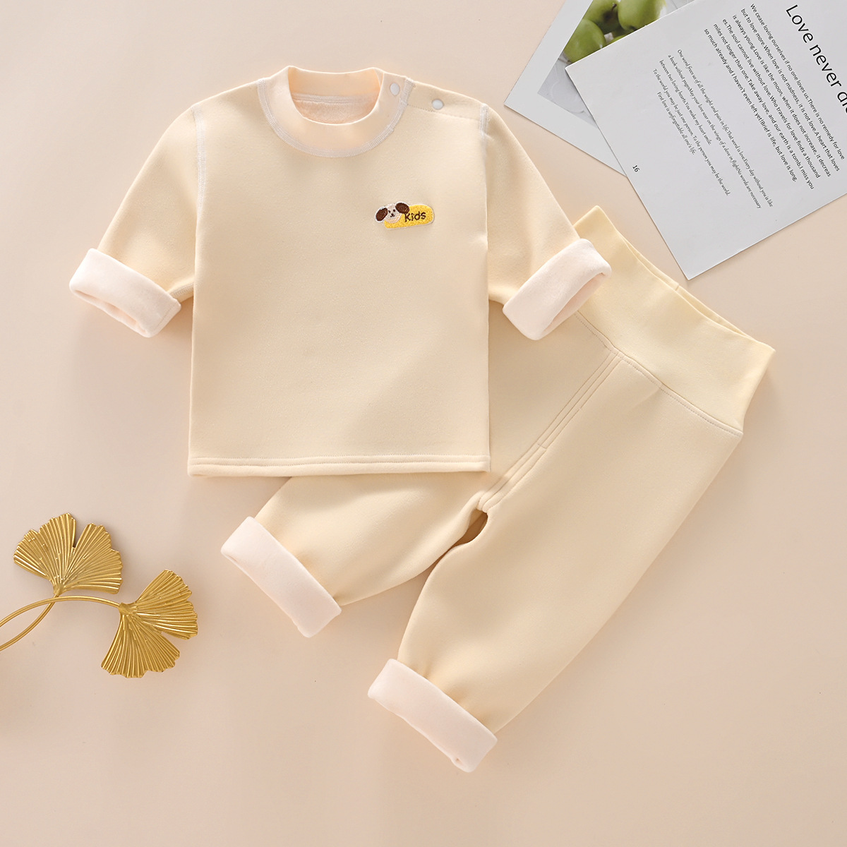 어린이 가을과 겨울 플러스 벨벳 세트 뼈없는 진짜 벨벳 따뜻한 옷 아기 바닥 두꺼운 옷