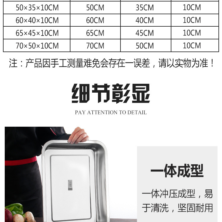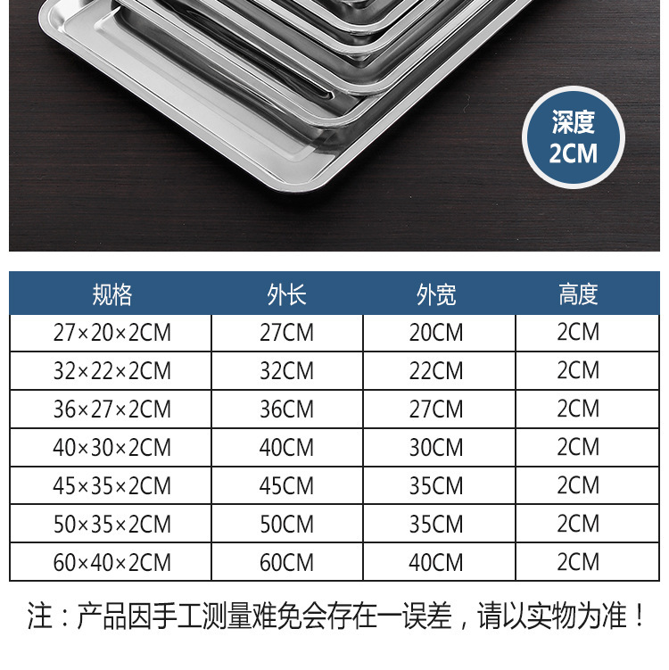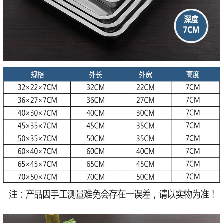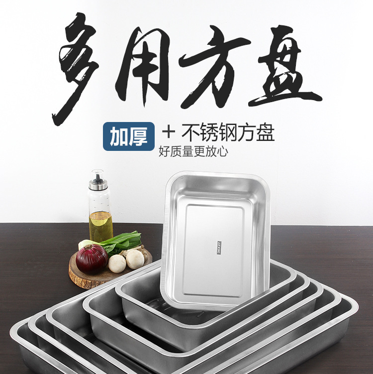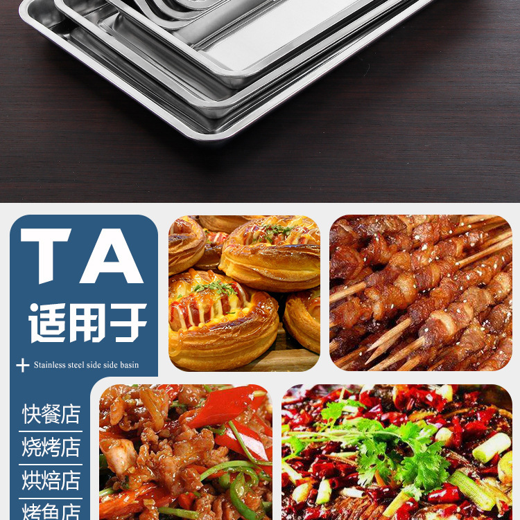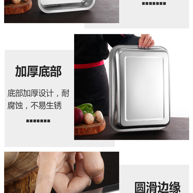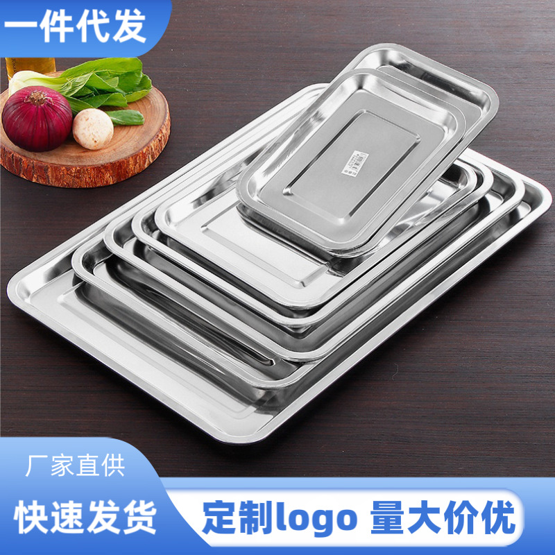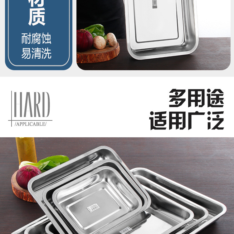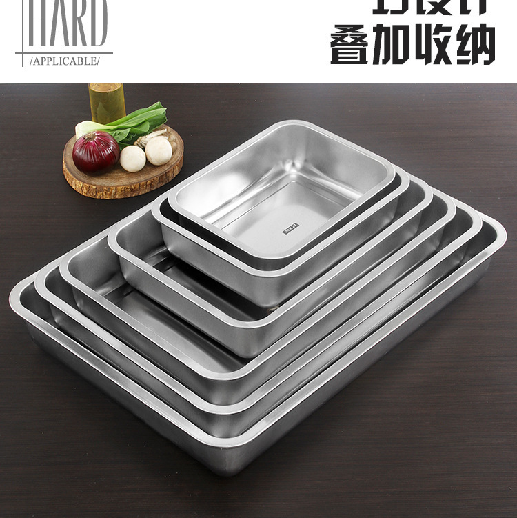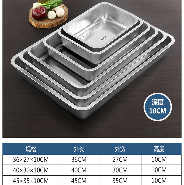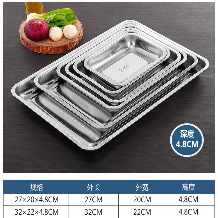 스테인레스 스틸 바베큐 플레이트 직사각형 사각 분지 심화 사각형 플레이트 상업 구운 생선 플레이트 트레이 초대형 철 분지 철판스토어 가기
