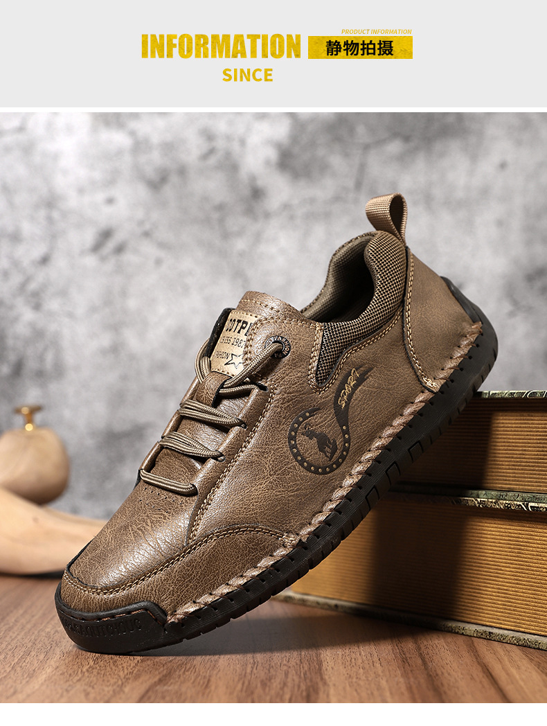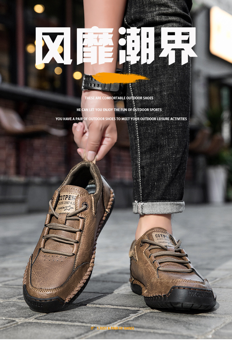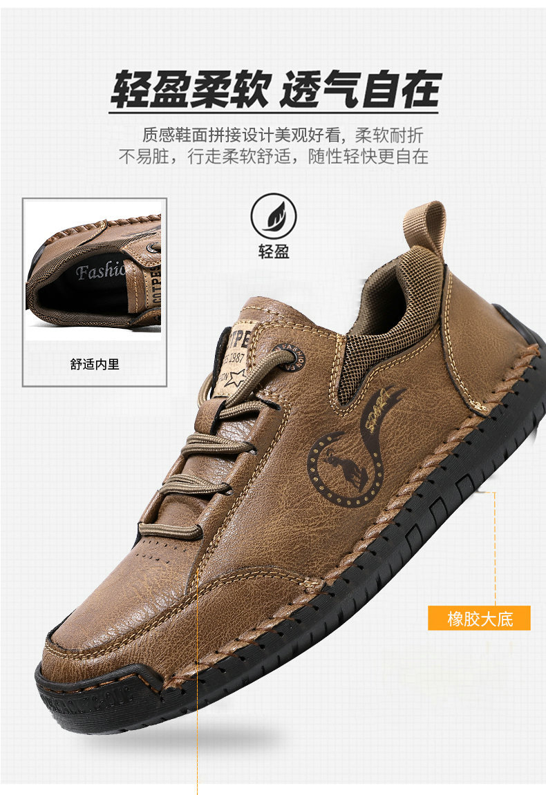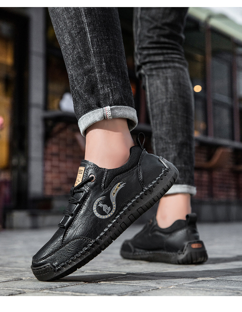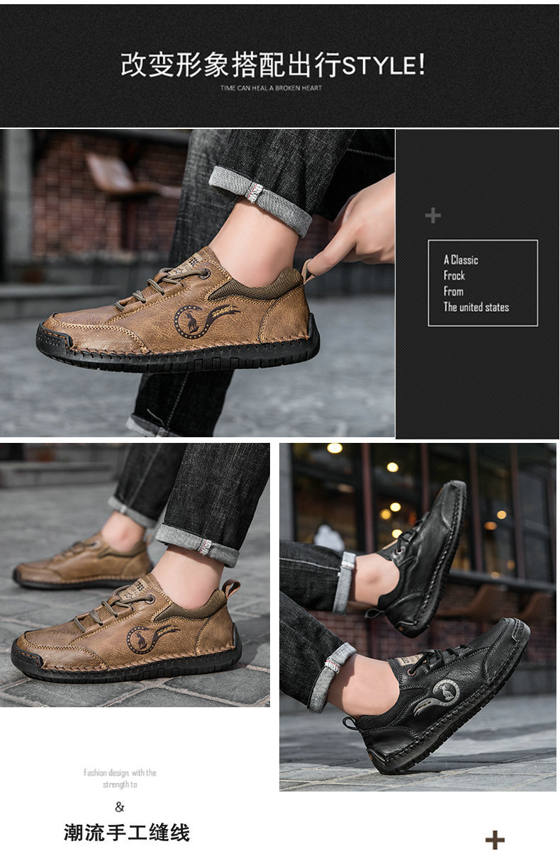 국경 간 인기있는 수제 스티칭 남성 신발 야외 캐주얼 신발 슬립 온 플랫 가죽 신발 로우 탑 플러스 사이즈 로퍼