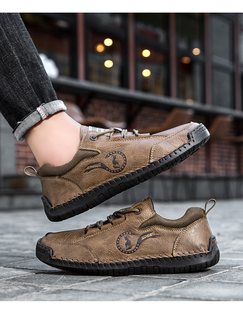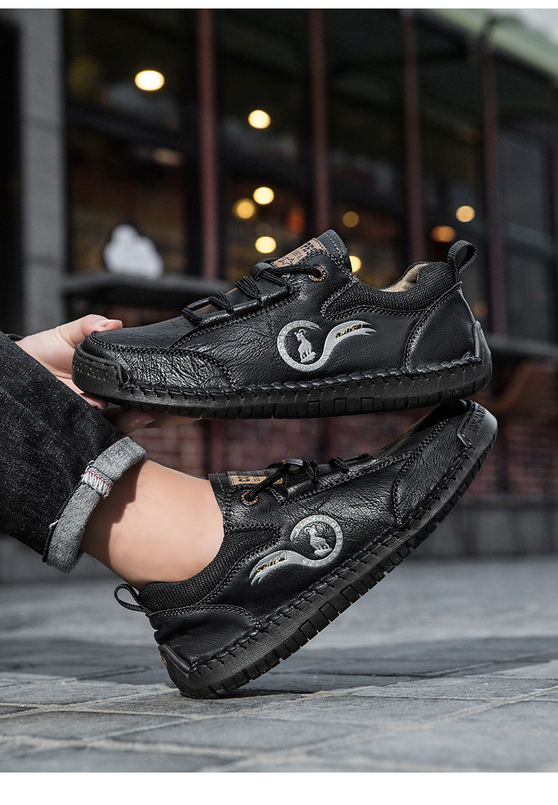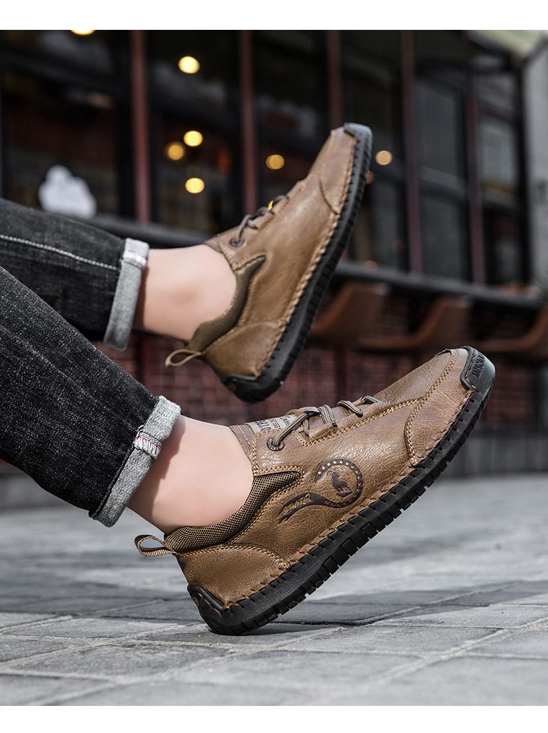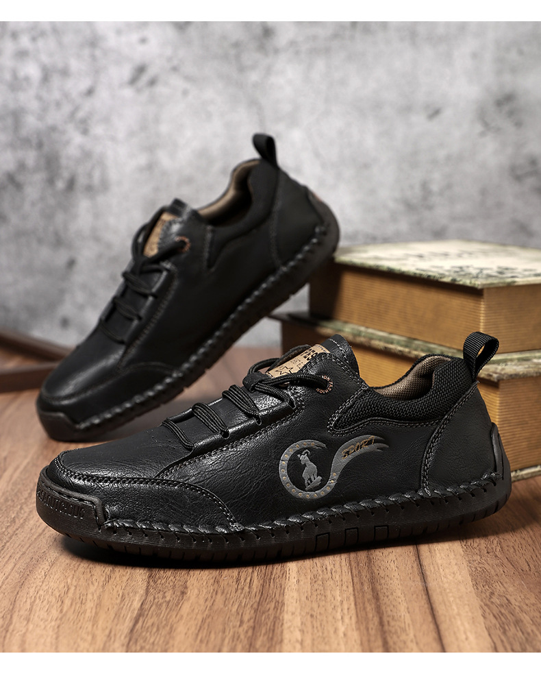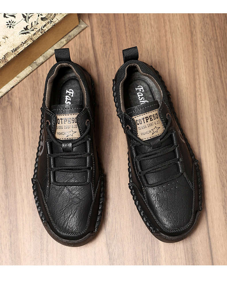 국경 간 인기있는 수제 스티칭 남성 신발 야외 캐주얼 신발 슬립 온 플랫 가죽 신발 로우 탑 플러스 사이즈 로퍼