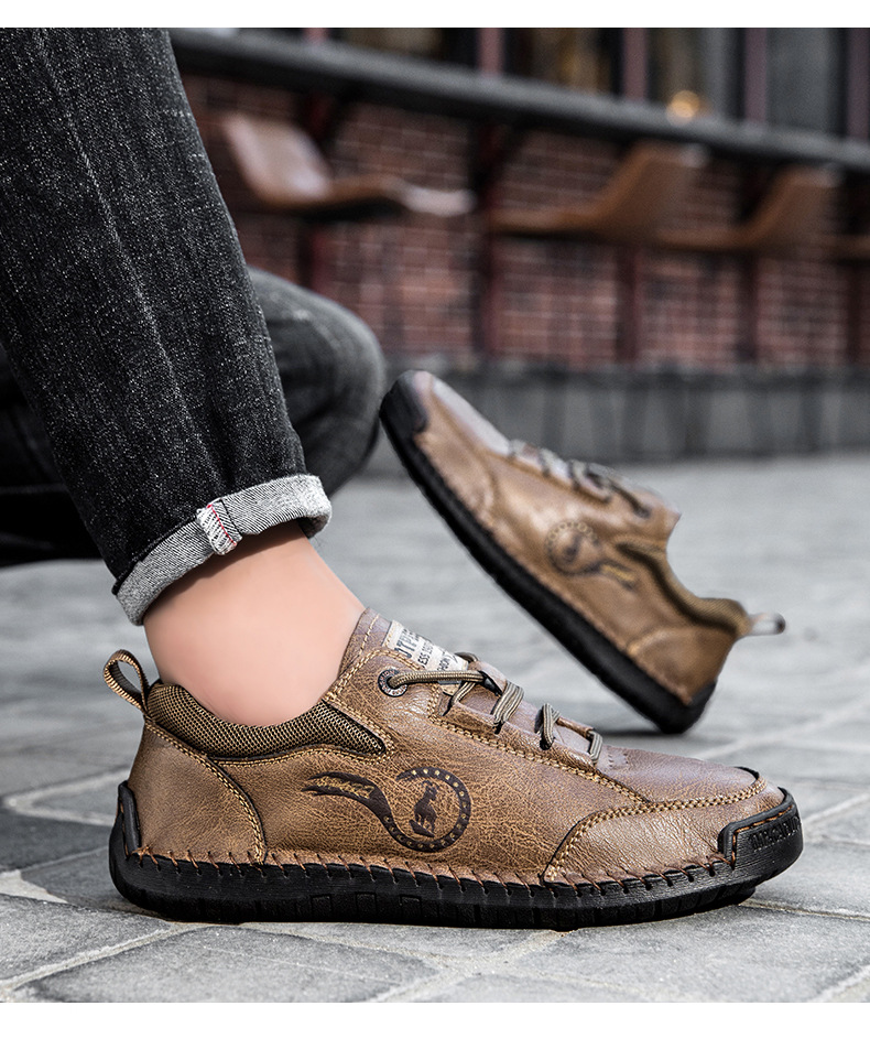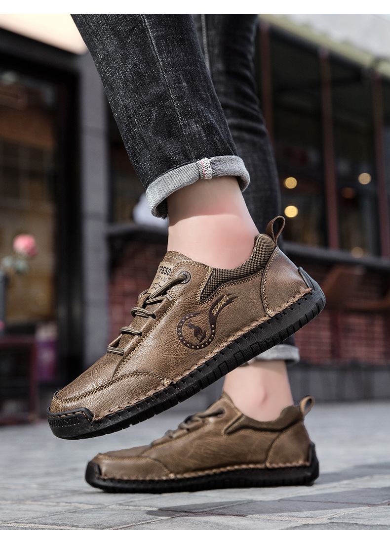 국경 간 인기있는 수제 스티칭 남성 신발 야외 캐주얼 신발 슬립 온 플랫 가죽 신발 로우 탑 플러스 사이즈 로퍼스토어 가기