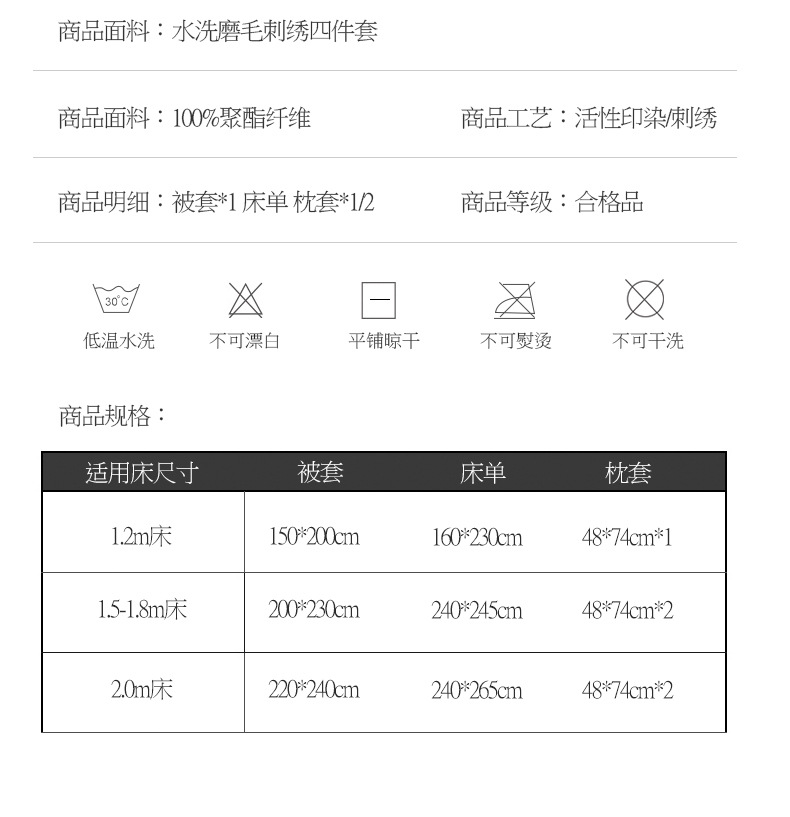 • 2.0m 침대 [4 피스 침대 시트]-220x240cm 이불에 적합