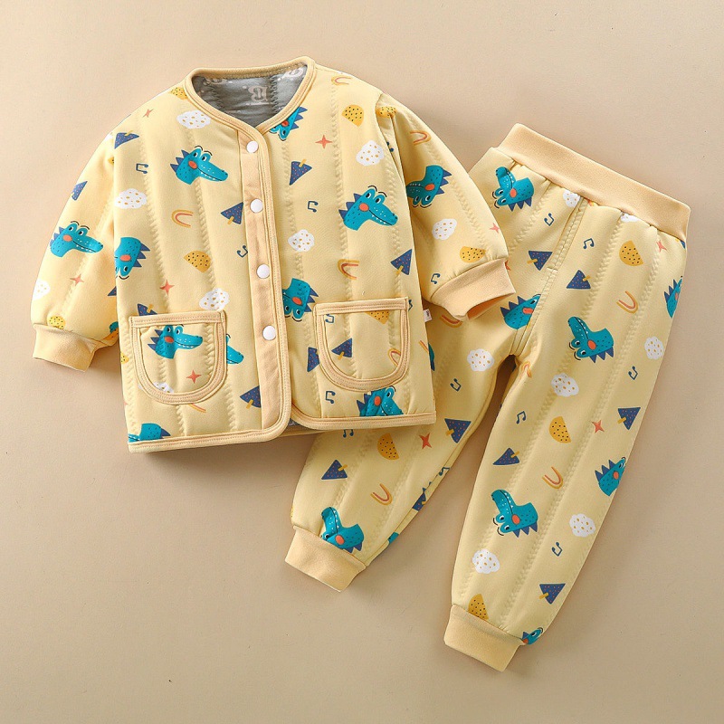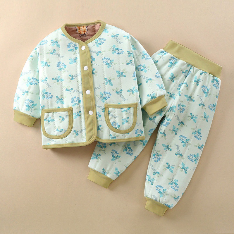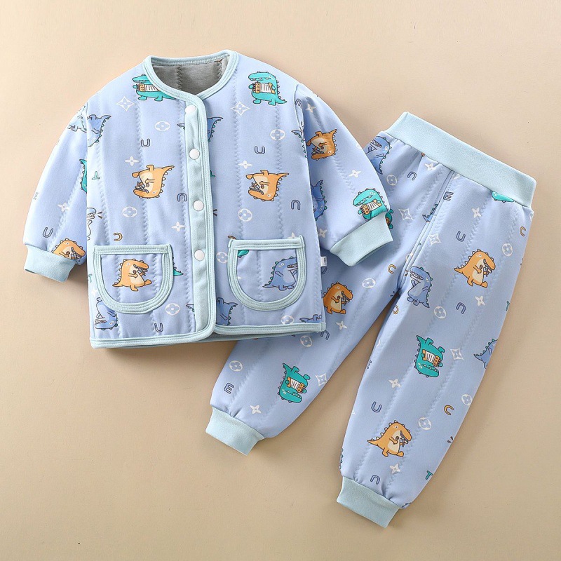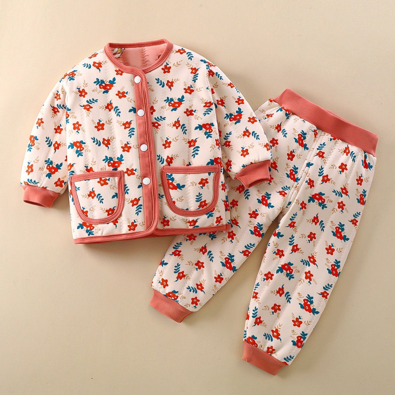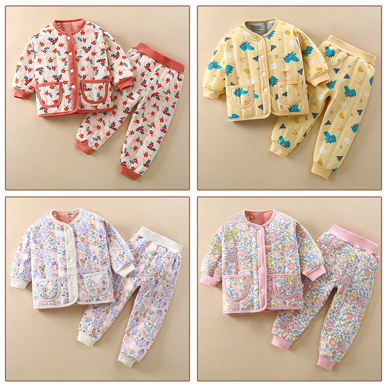 어린이 3 층 퀼트 속옷 세트 소년 소녀 코튼 패딩 자켓 코튼 패딩 팬츠 가을 겨울 따뜻한 집 옷을 입습니다.