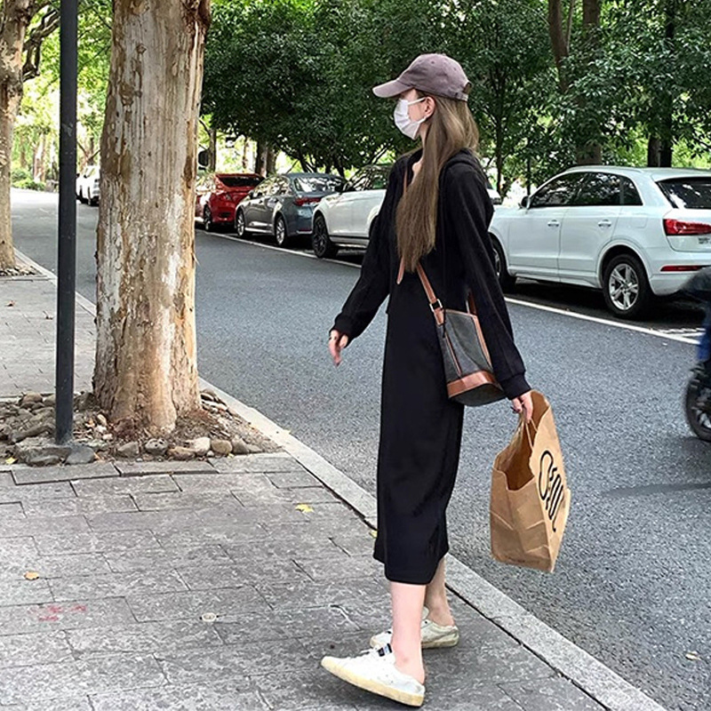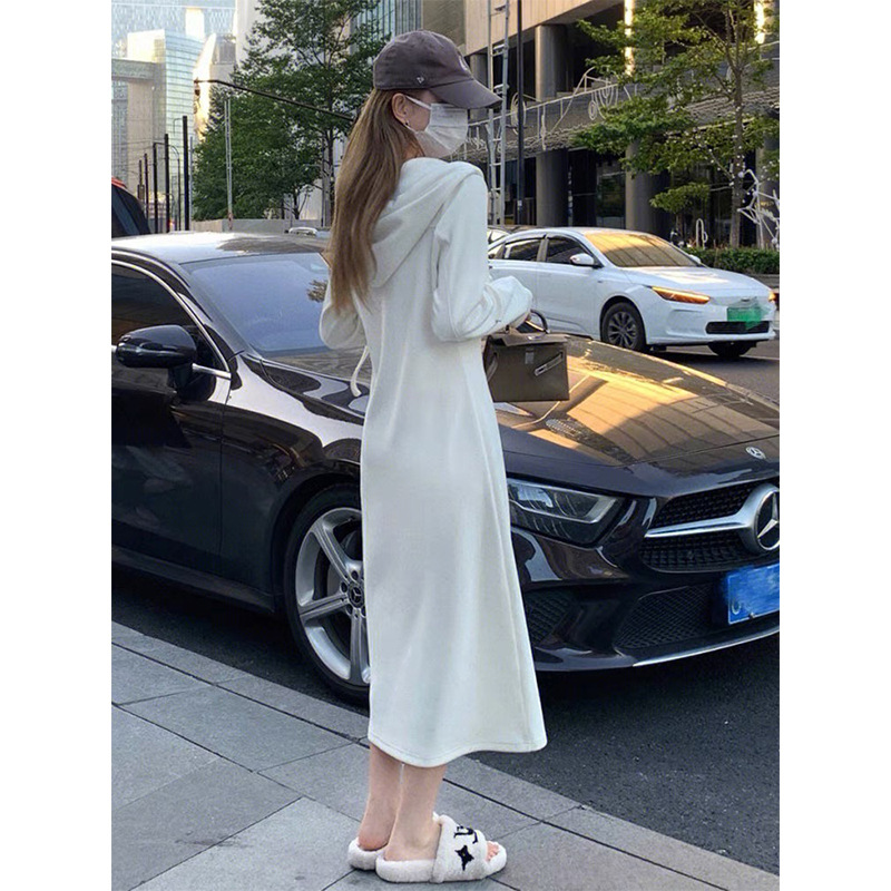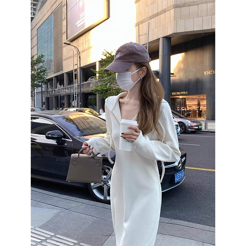 가을과 겨울 원피스 흰색 긴 후드 스웨터 24 오버코트 바닥 원피스 가진 새로운 여성 의류스토어 가기