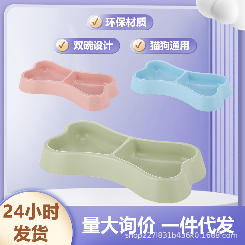 작은 개 그릇에 적합한 애완 동물 그릇 더블 그릇 뼈 모양 고양이 그릇 피더 애완 동물 용품 재고 도매