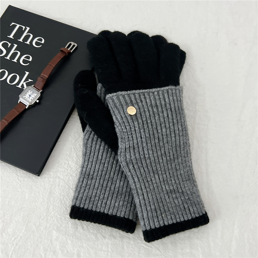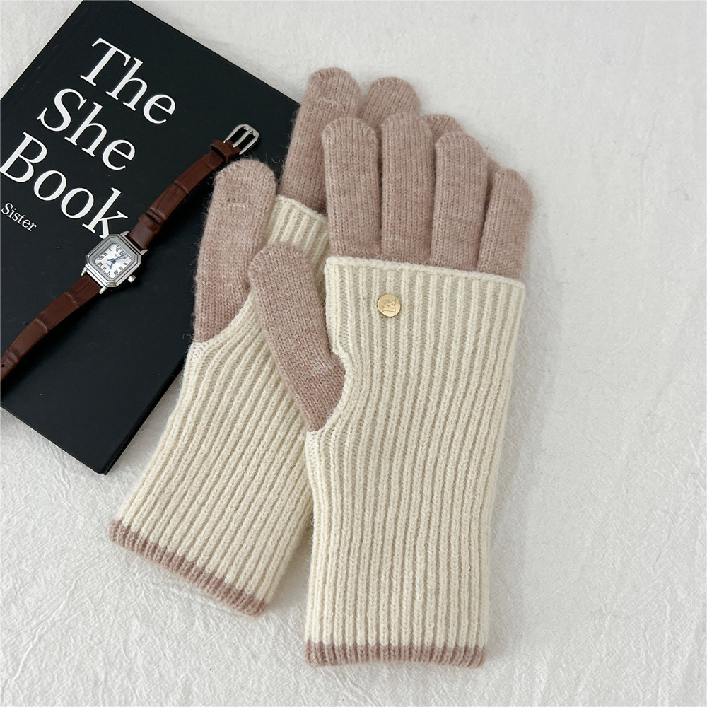 니트 따뜻한 더블 레이어 장갑 여성 겨울 두꺼운 학생 타고 야외 터치 스크린 누설 손가락 다섯 손가락스토어 가기