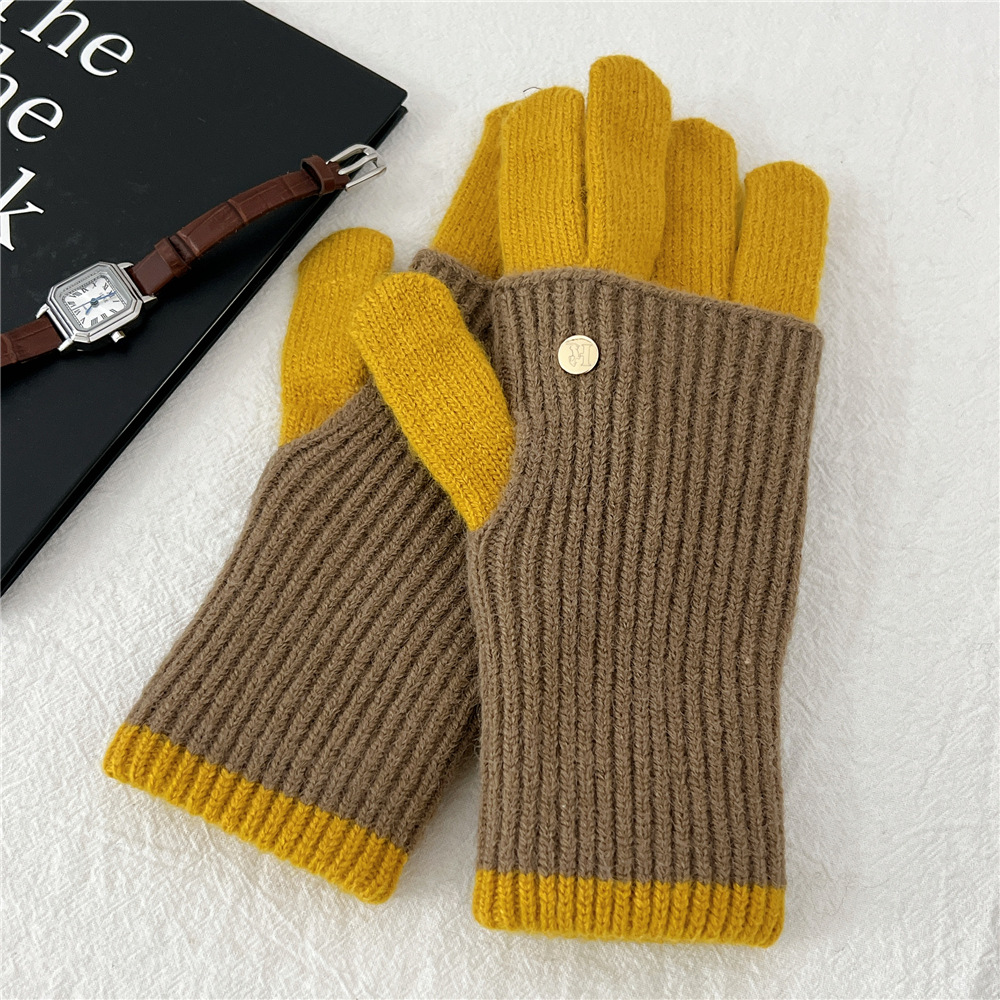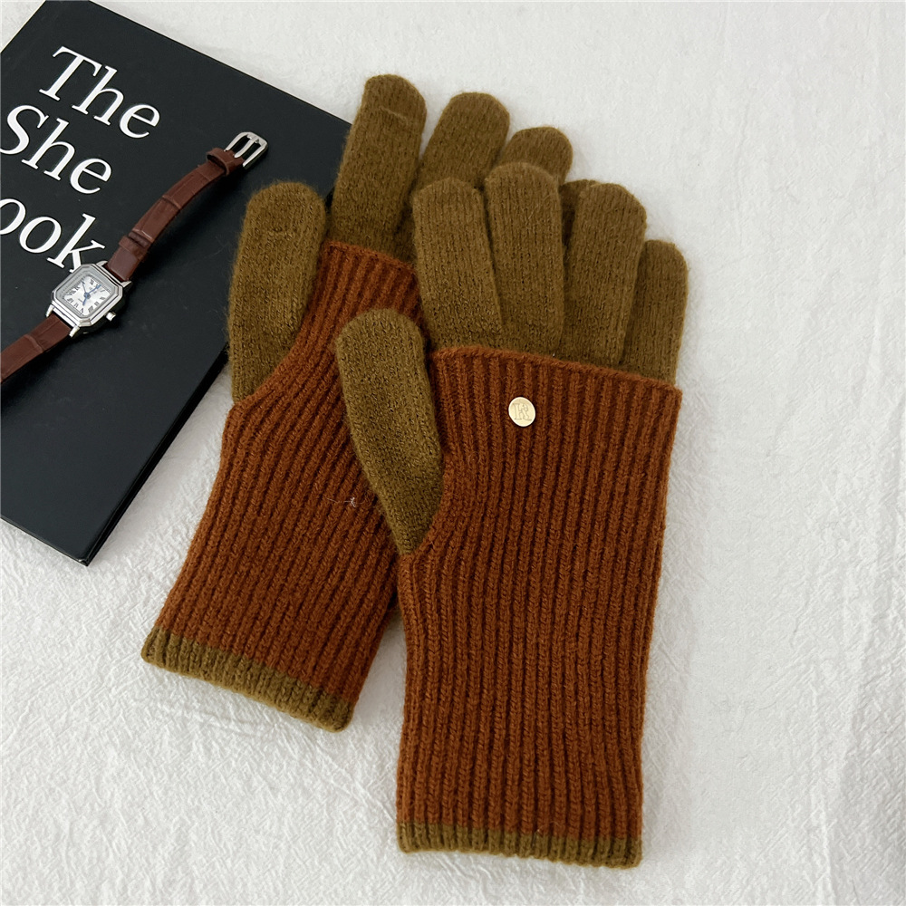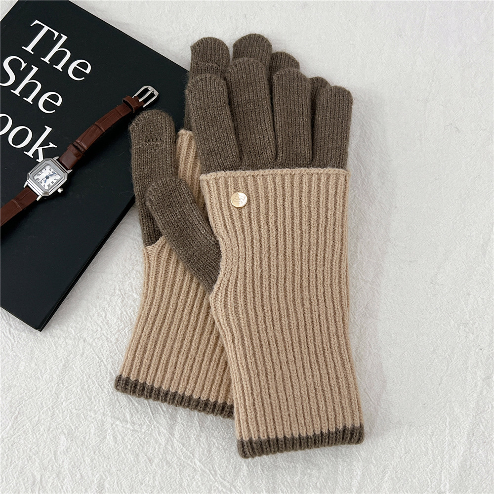 니트 따뜻한 더블 레이어 장갑 여성 겨울 두꺼운 학생 타고 야외 터치 스크린 누설 손가락 다섯 손가락