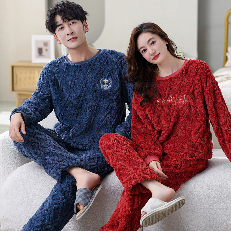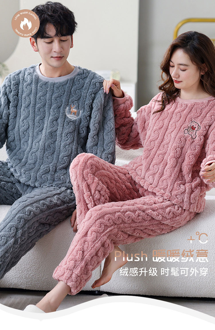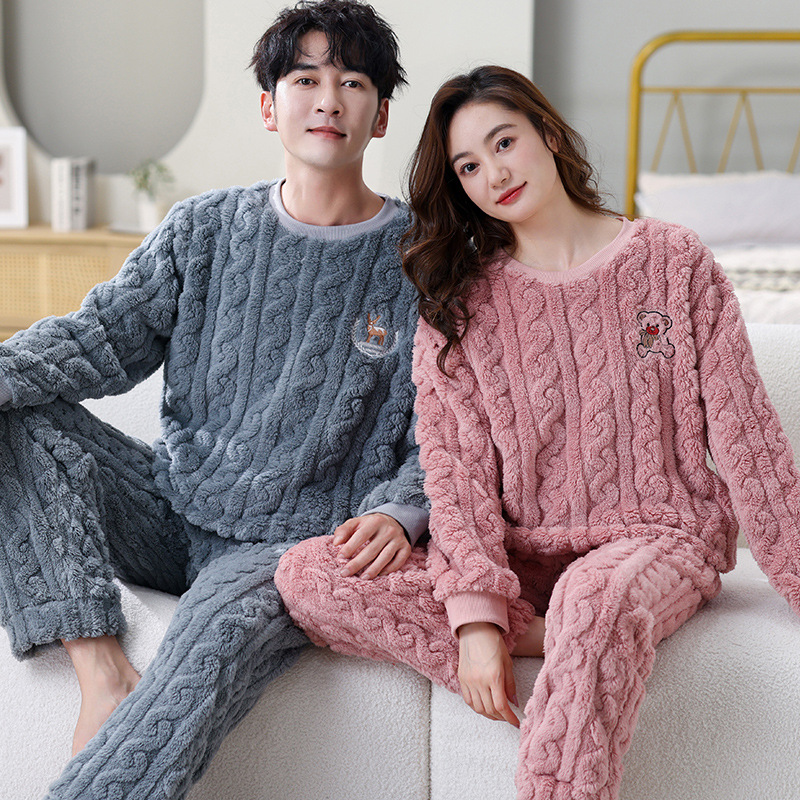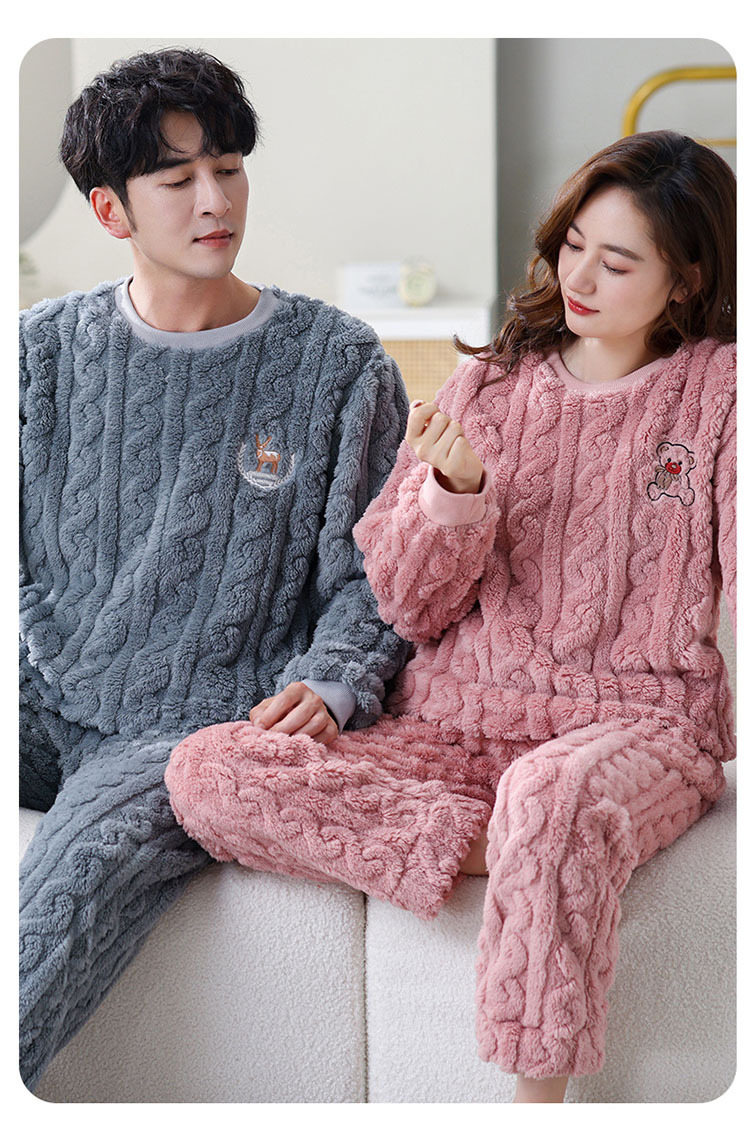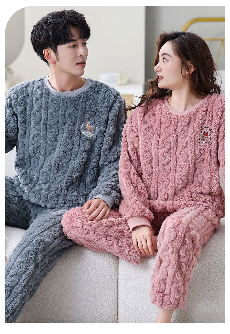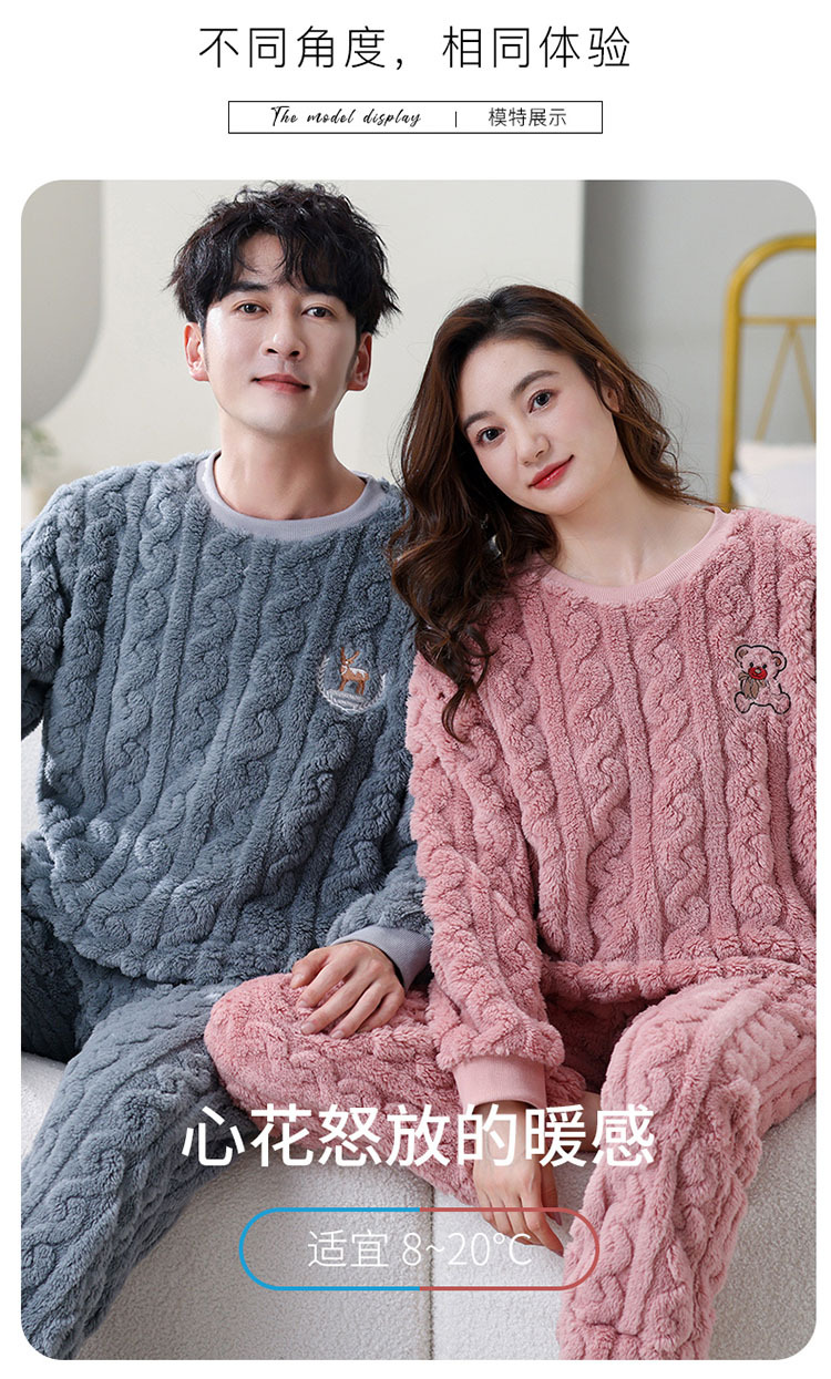 커플 잠옷 겨울 긴팔 산호 양털 기모 두껍게 한 여성의 따뜻한 남성 야외 착용 가을 겨울 홈웨어스토어 가기