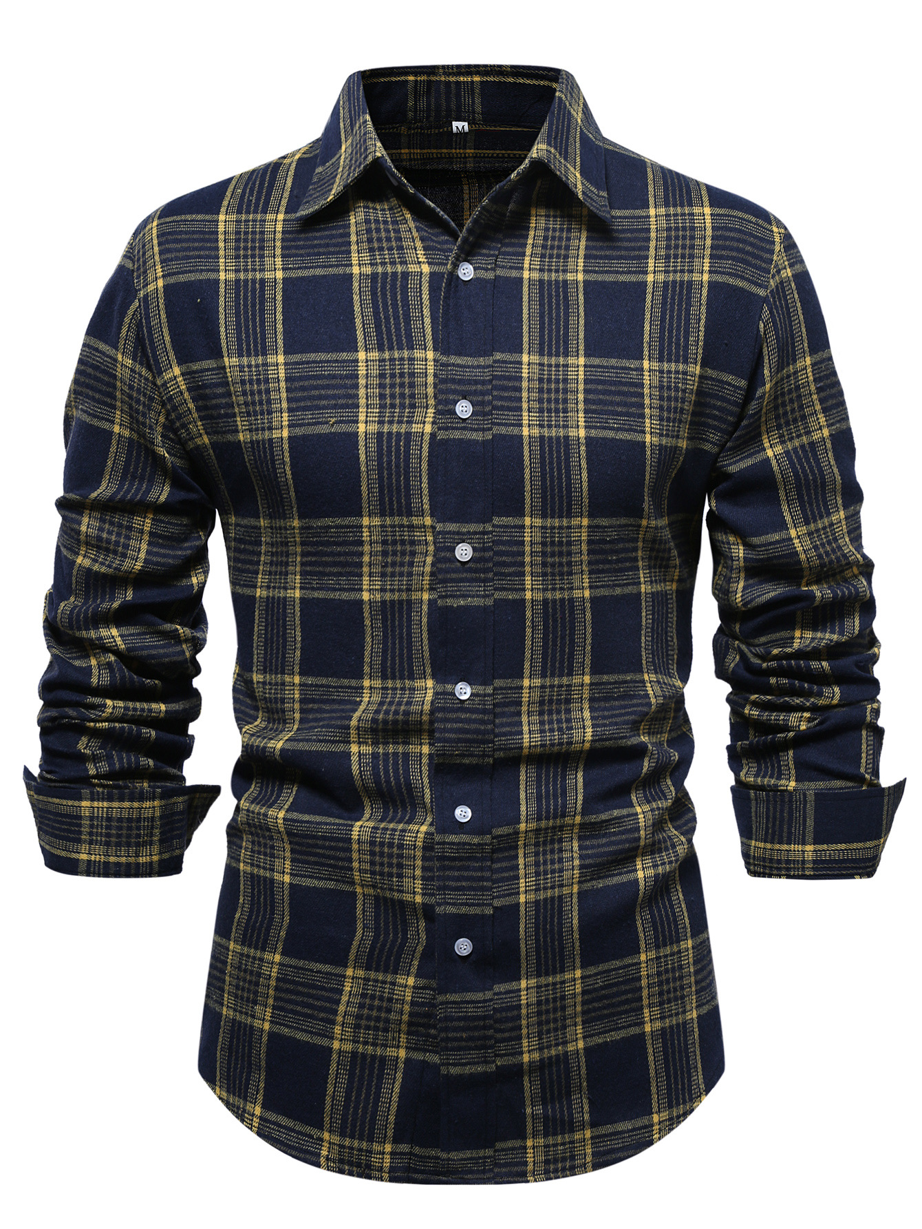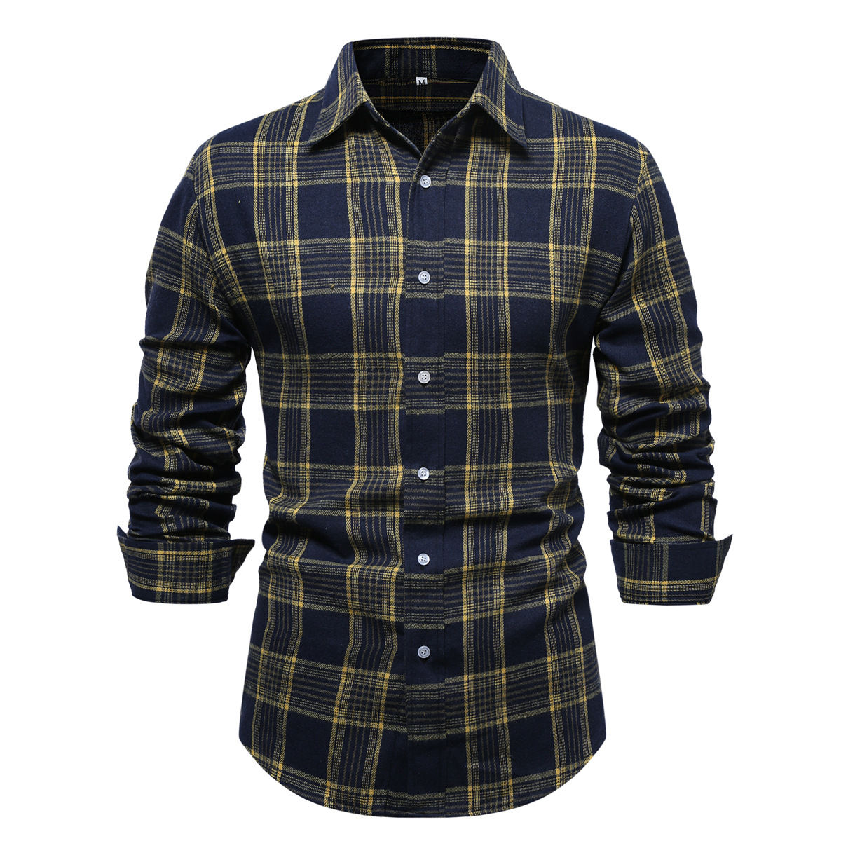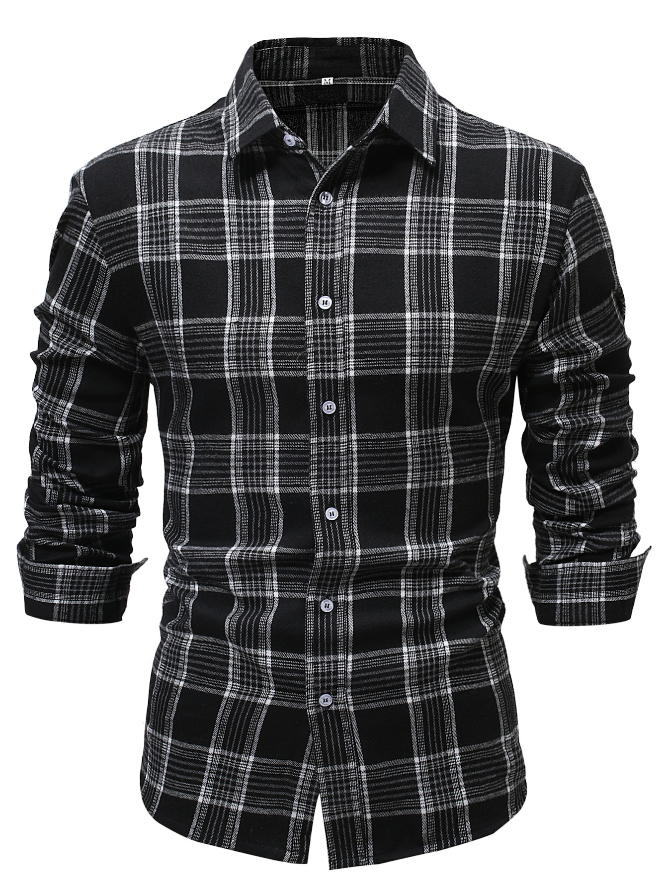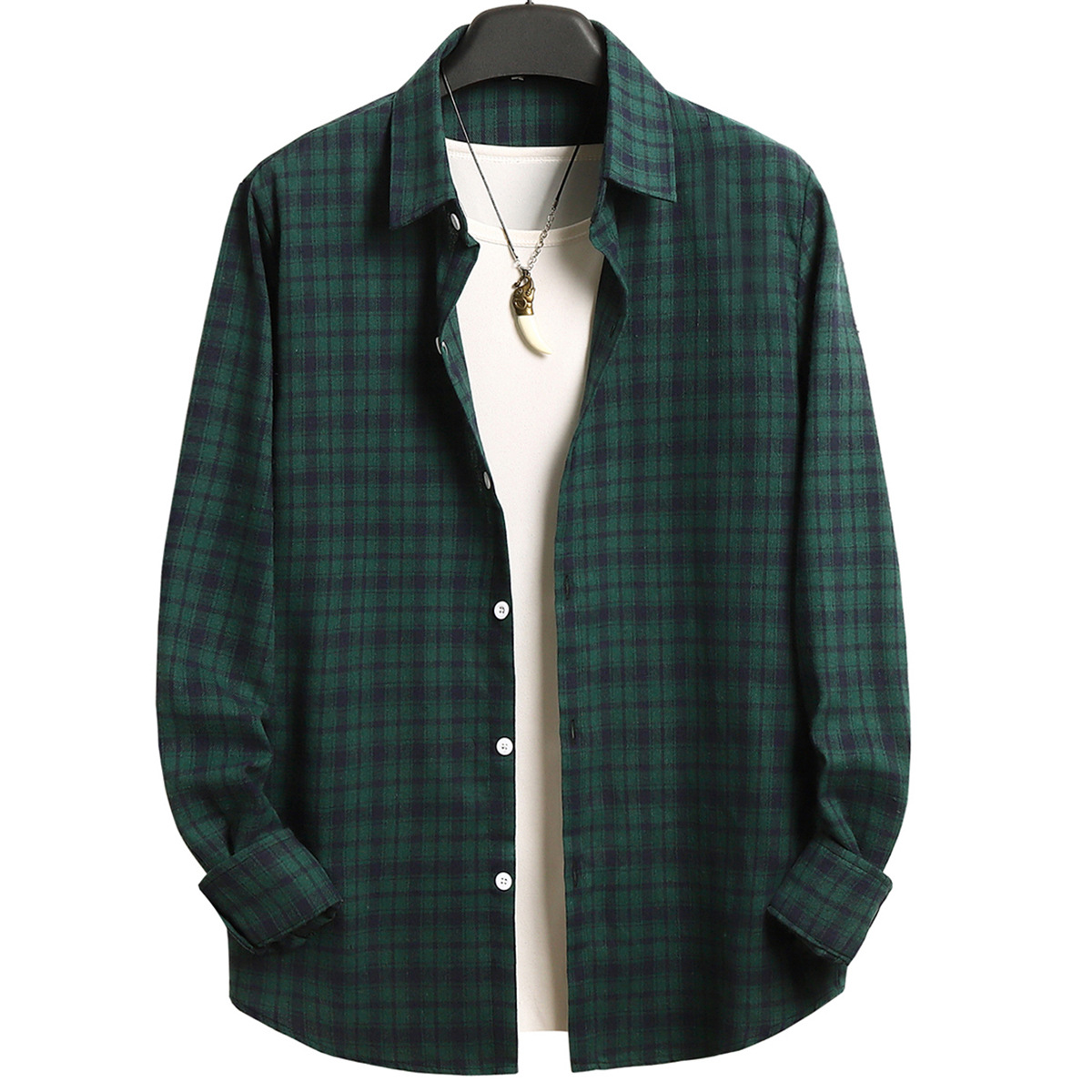 대외 무역 남성 남성 셔츠 캐주얼 녹색 브러시 체크 무늬 긴팔 셔츠 남성용 가을과 겨울 국경 의류스토어 가기
