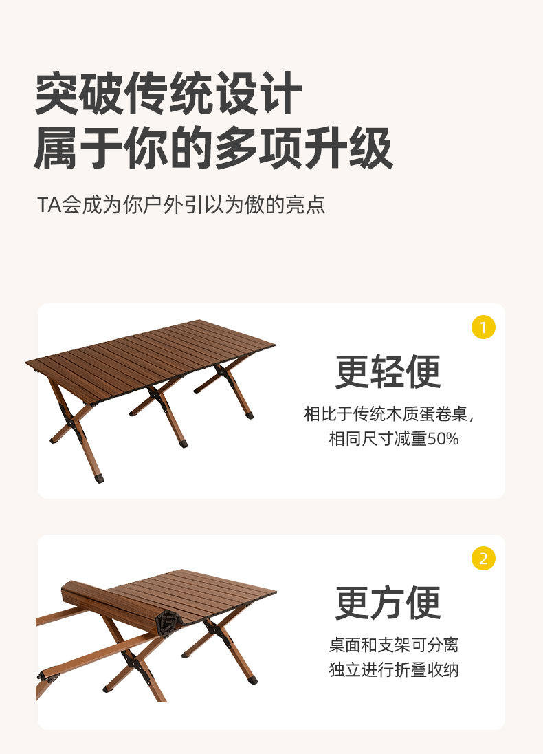 맞춤형 야외 접이식 계란말이 테이블, 여행용 휴대용 접이식 테이블, 나뭇결 테이블, 캠핑 바베큐 피크닉 테이블 가공스토어 가기