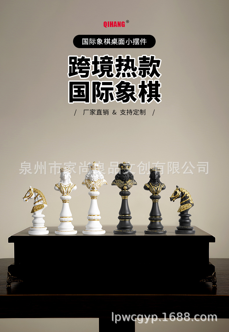 국경 간 핫 체스 장식품 흑백 골드 및 실버 서양 그림 작은 체스 조각 홈 데스크탑 장식스토어 가기
