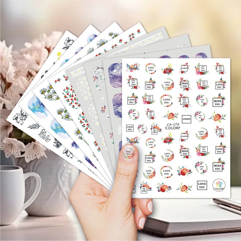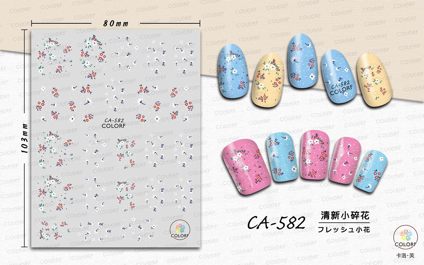 국경 간 무역 인기 상품 CA 시뮬레이션 네일 스티커 열대풍 꽃무늬 작은 꽃 화환 네일 스티커 도매