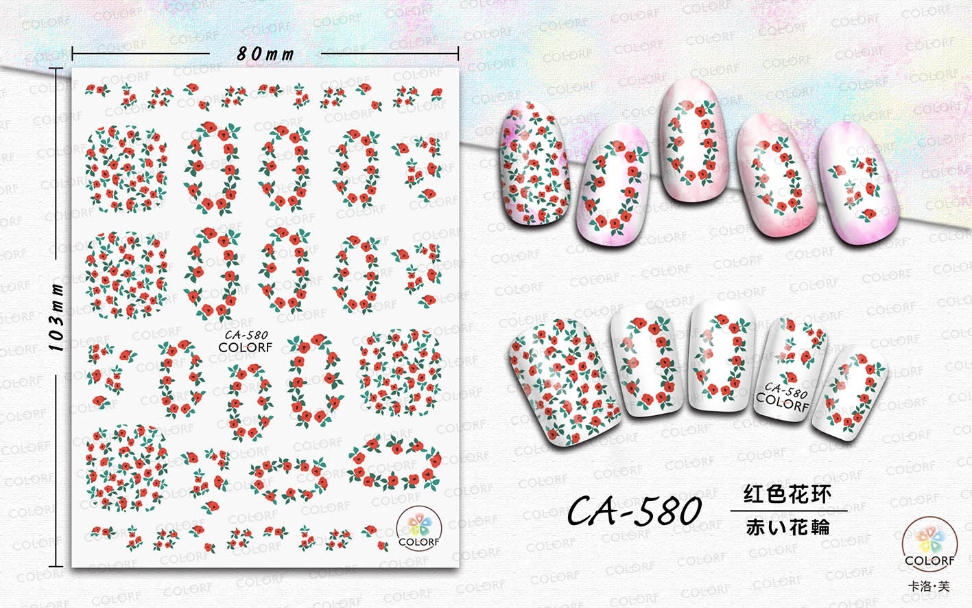 국경 간 무역 인기 상품 CA 시뮬레이션 네일 스티커 열대풍 꽃무늬 작은 꽃 화환 네일 스티커 도매스토어 가기
