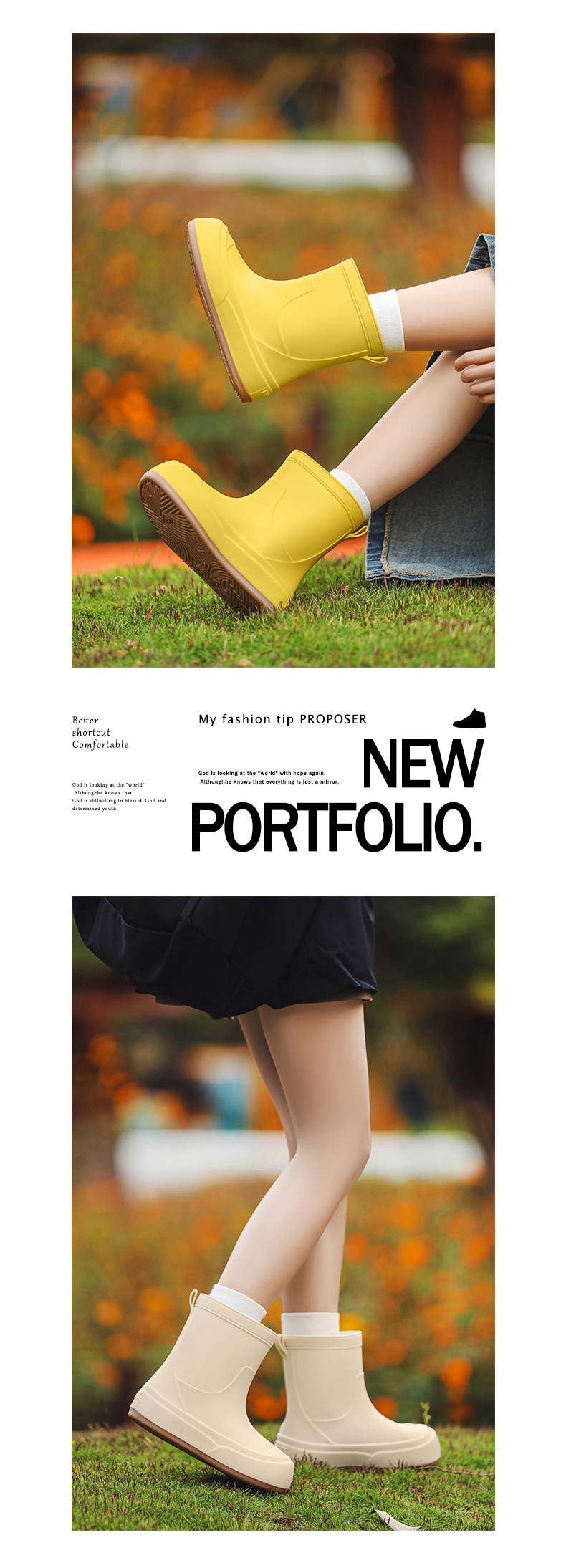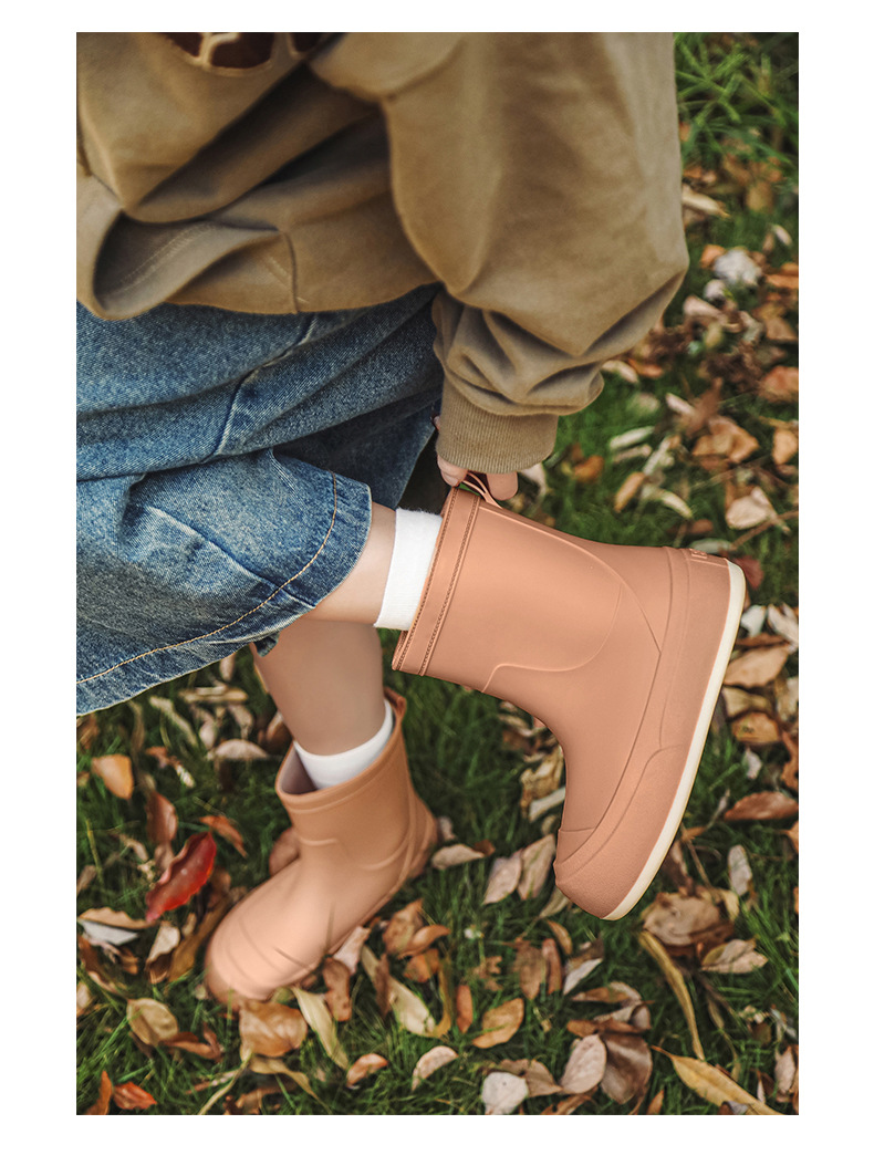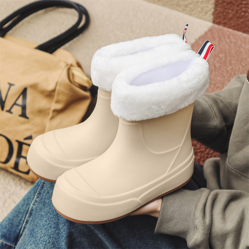 국경 간 패션 장화 여성의 중간 송아지 미끄럼 방지 간단한 장화 야외 쇼핑 세차 방수 고무 신발 면화 따뜻한 신발
