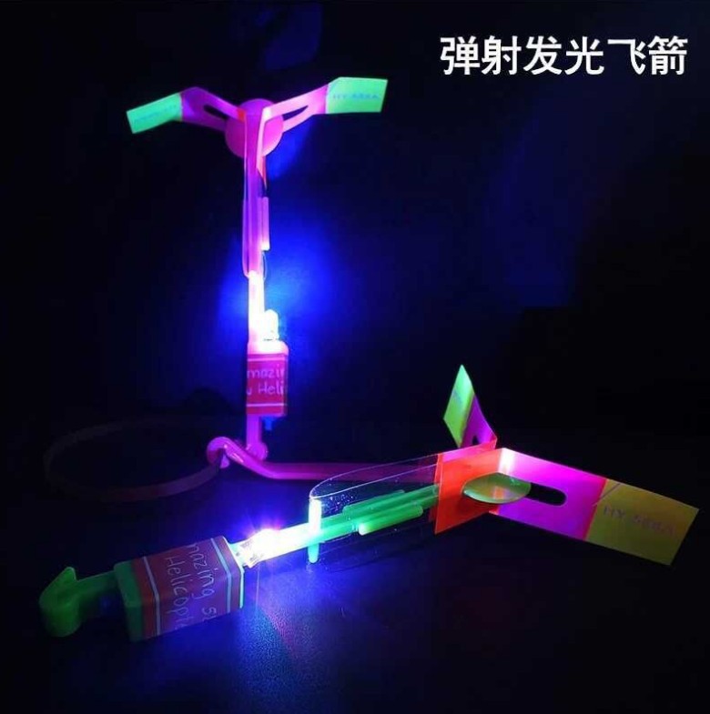 • 【产品材料】:塑料、优质耐折叶片橡皮筋、LED灯 AG3环保扭扣电池三颗