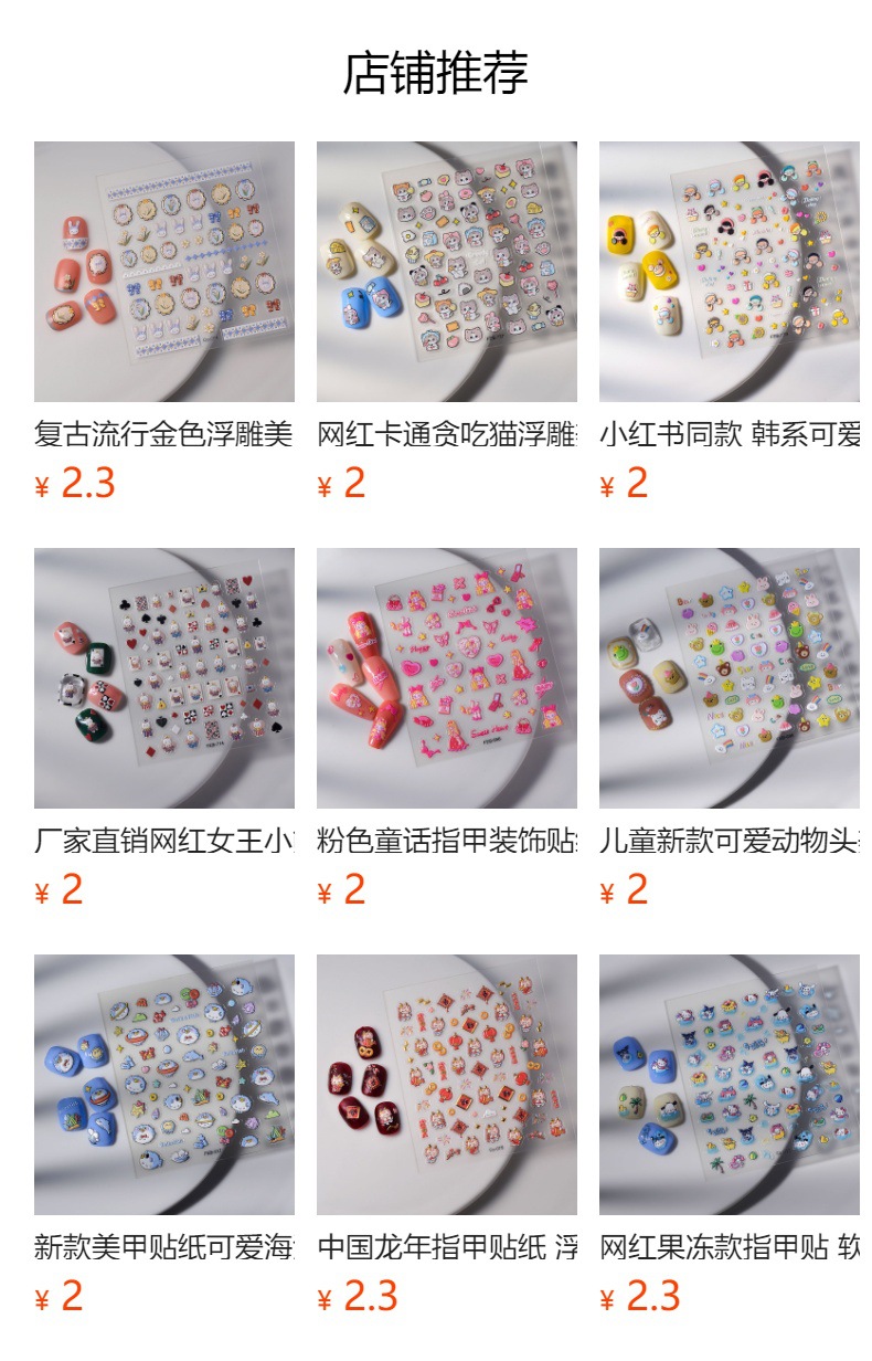 产品卖点:5D 立体 浮雕 防水 无痕 美甲贴纸